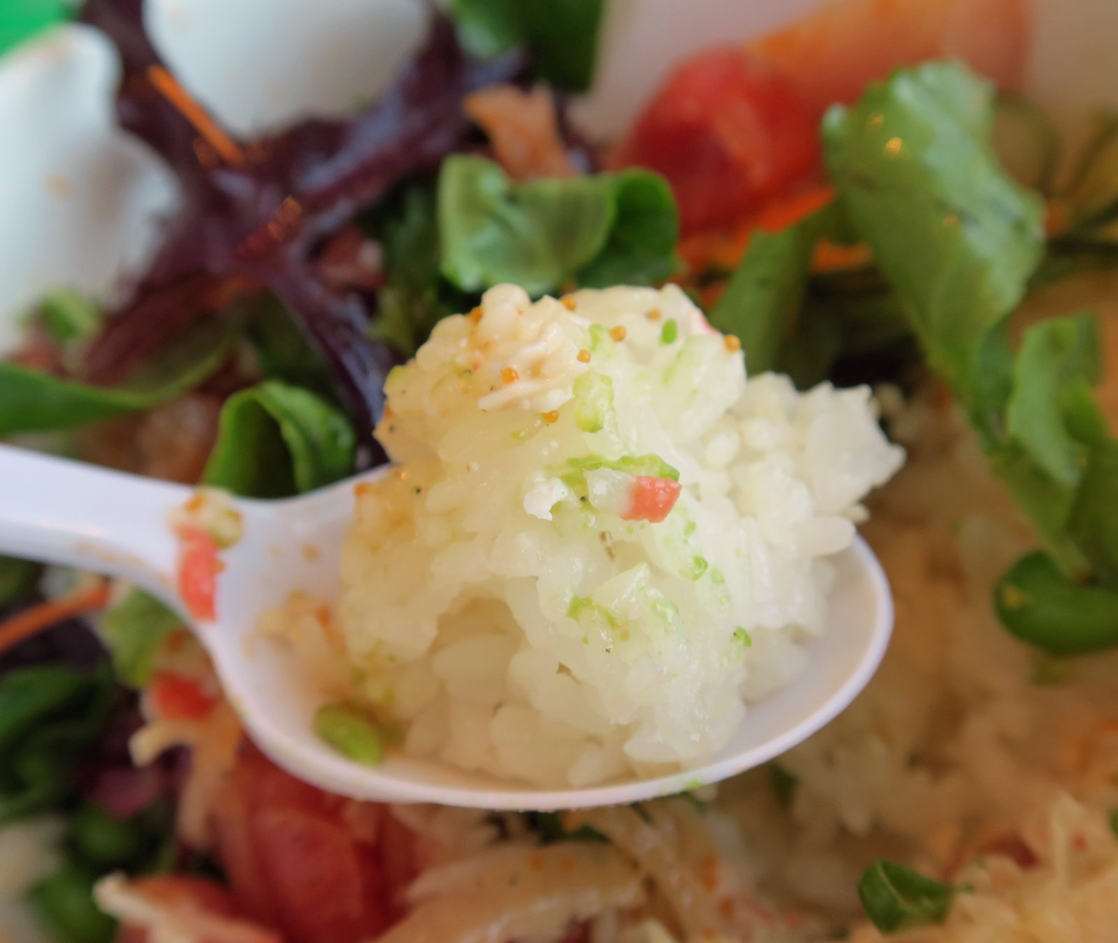 I liked the standard issue salad mix, though I wish these places would work on dressing the salad a bit if they're serving that. The rice was really bad this time around; dry and hard.