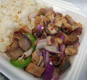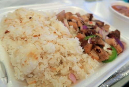 I dropped by between meetings to pick up an early lunch on the way back to the office. A 2 item combo with Garlic Rice.