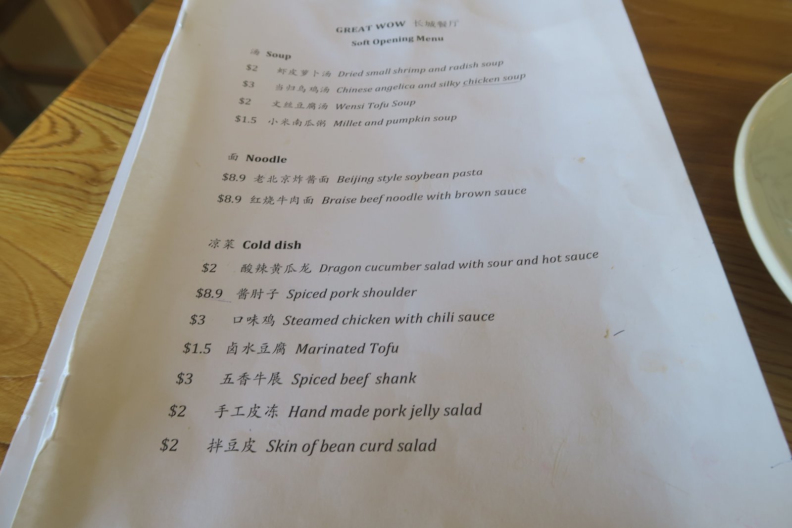 Last week Candice and I were free for lunch, so we met up at Great Wow. The interior is fairly simple, plain wooden tables, and super hard and rather uncomfortable wooden chairs.
