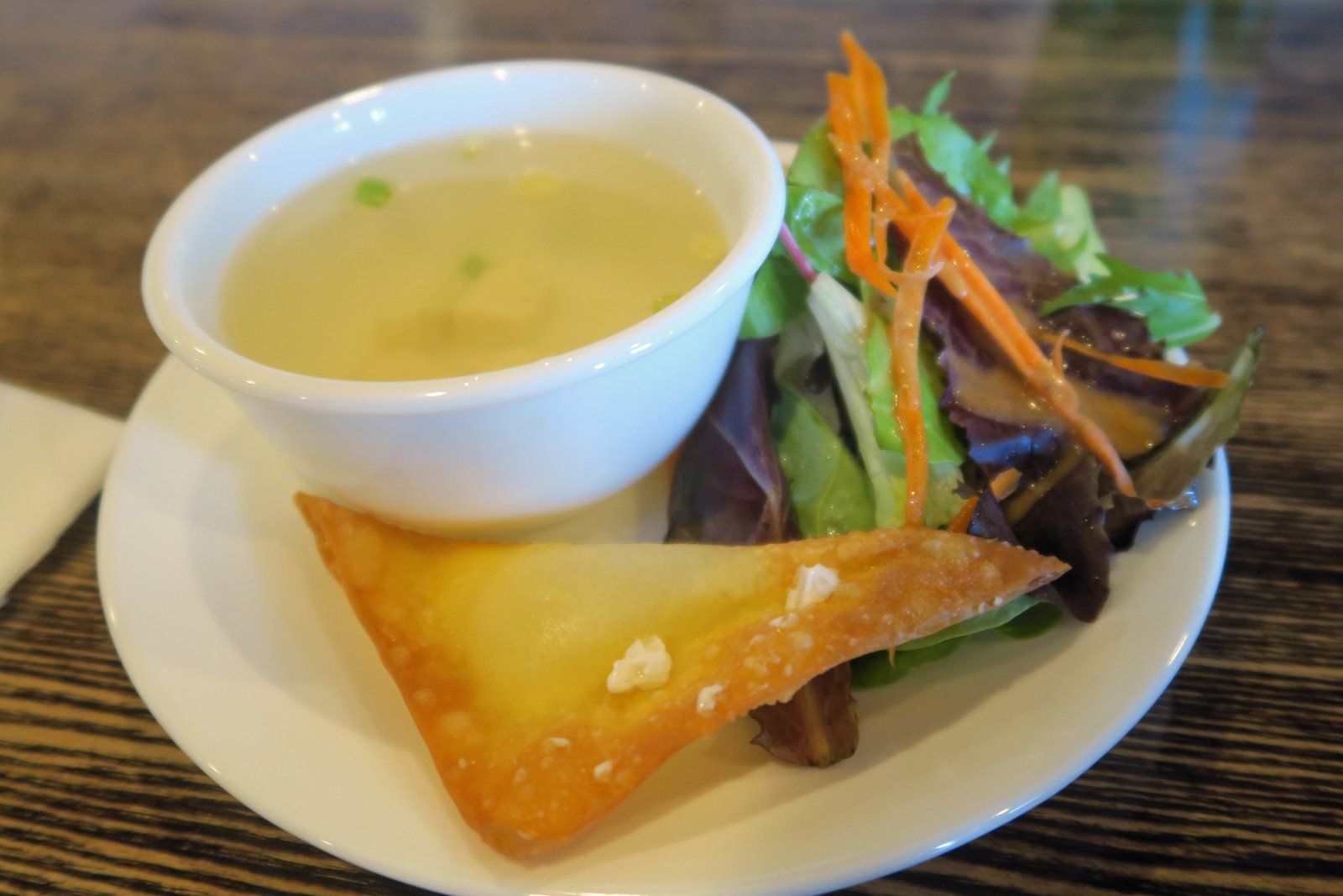 Needless to say, I should have just told them to forget about the insipid soup, the smear of cream cheese in a wonton….well….the salad wasn't too bad.