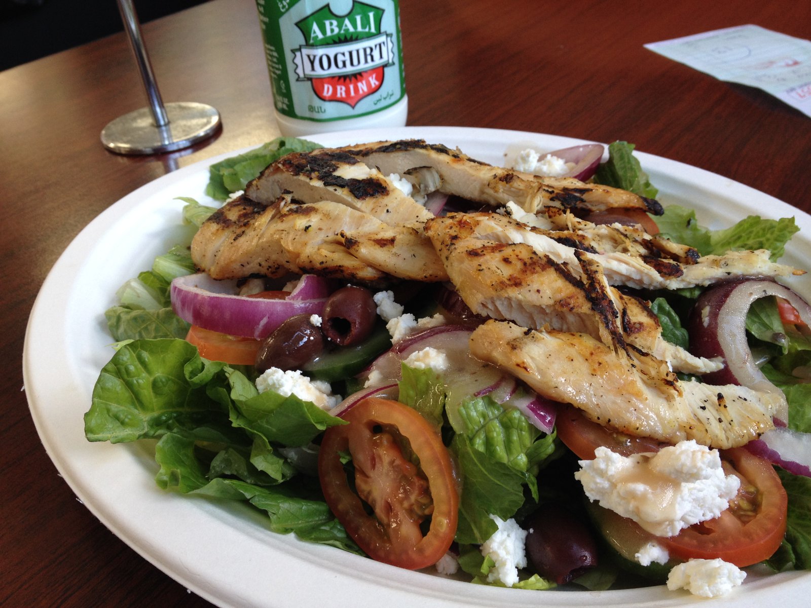 The salad plate with chicken is $8 and enough for a meal or a light bite to share. (Depending on my mood, I'll walk into the store and purchase a beverage while waiting)