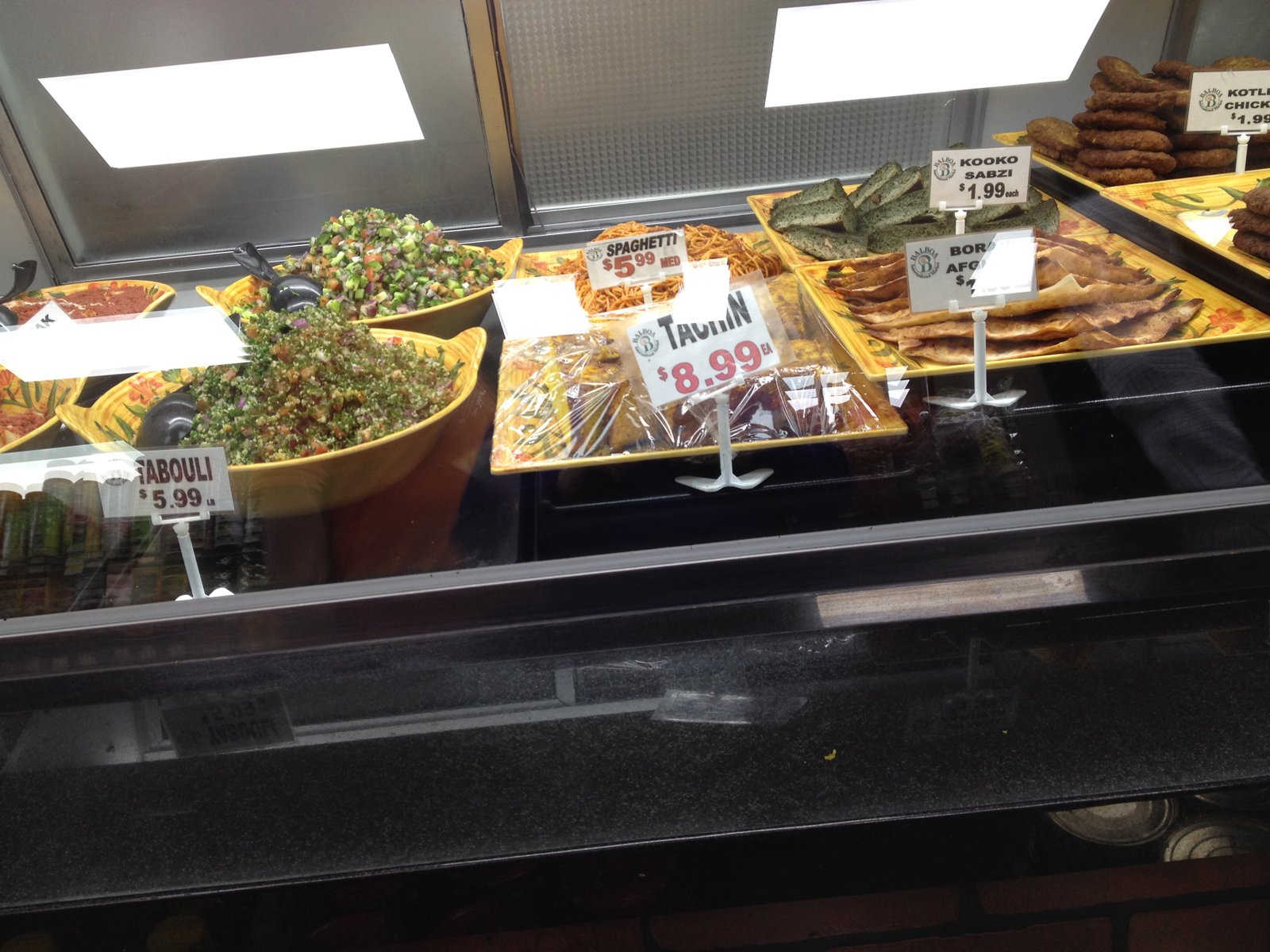 Walking though the doors of the market, (if there aren't any grills cooking out in front), then to the left and back corner, you'll find a deli counter with many choices, and a menu over a cash register, where you can place your order.