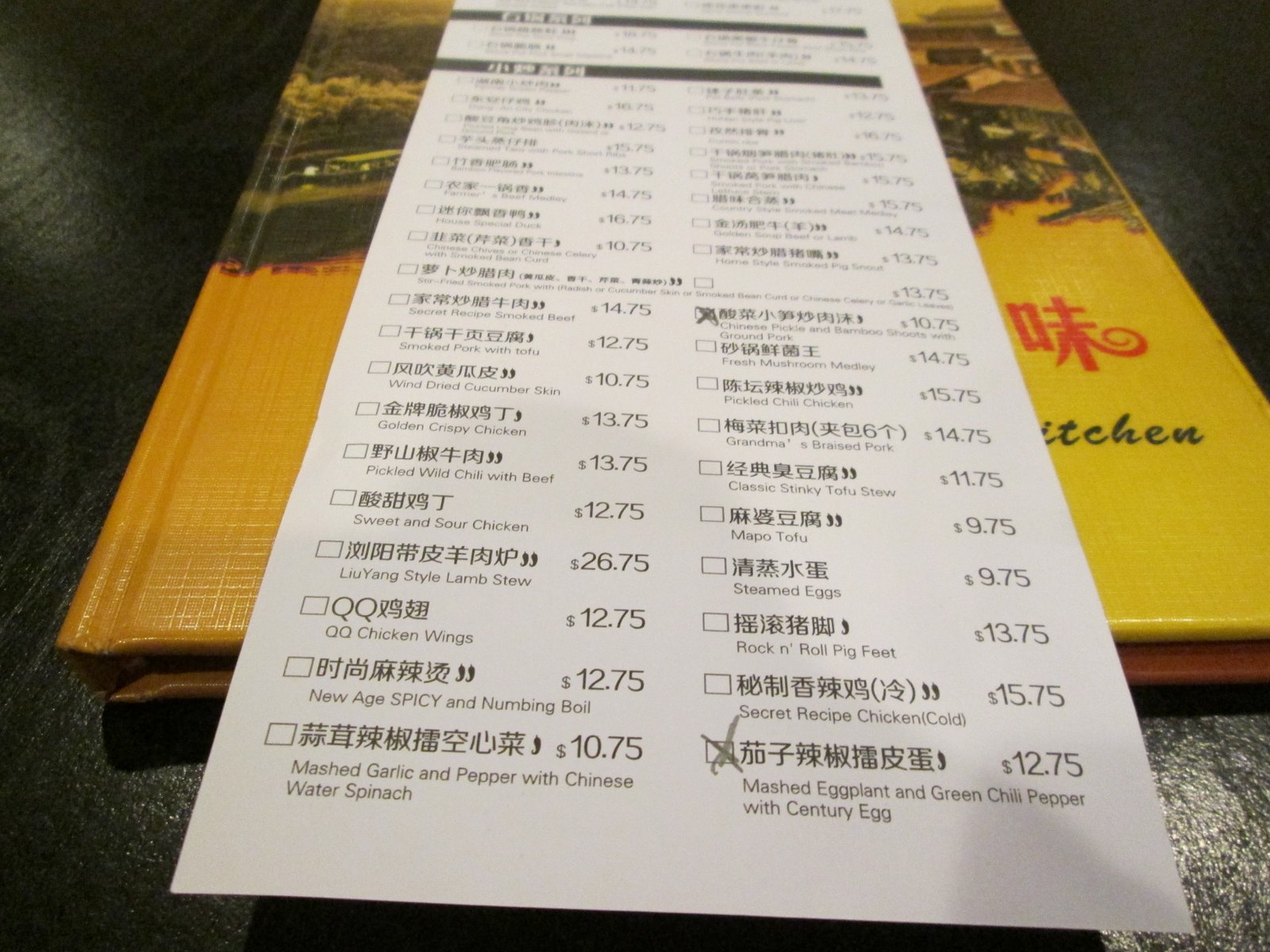 Village Kitchen. The recent opening of a few regional Chinese restaurants in San Diego seems like a good trend. Not sure which one to try, I ended up at Village Kitchen. As a gringo (is there a Chinese equivalent?), I appreciated the order sheet along with the menu that pictured every dish. Made things simpler and reduced chances of mistakes: