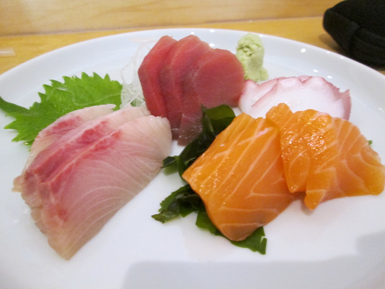 The parking lot has plenty of spaces, and the restaurant is not crowded. I really enjoy the low key ambience, the friendly service, and the easy jazz playing in the background. I ordered the very basic sashimi lunch: