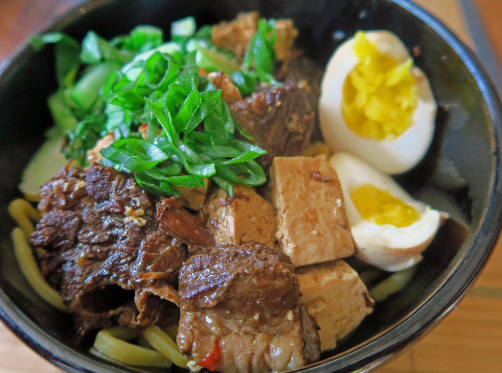 My order actually took a while, but the bowl was huge. I liked that the rare steak, in spite of being the usual rather tough top round, was still rare when the bowl arrived. Most of the proteins; the brisket, et al, were pretty bland, though the textures, especially the tendon was pretty much spot on.