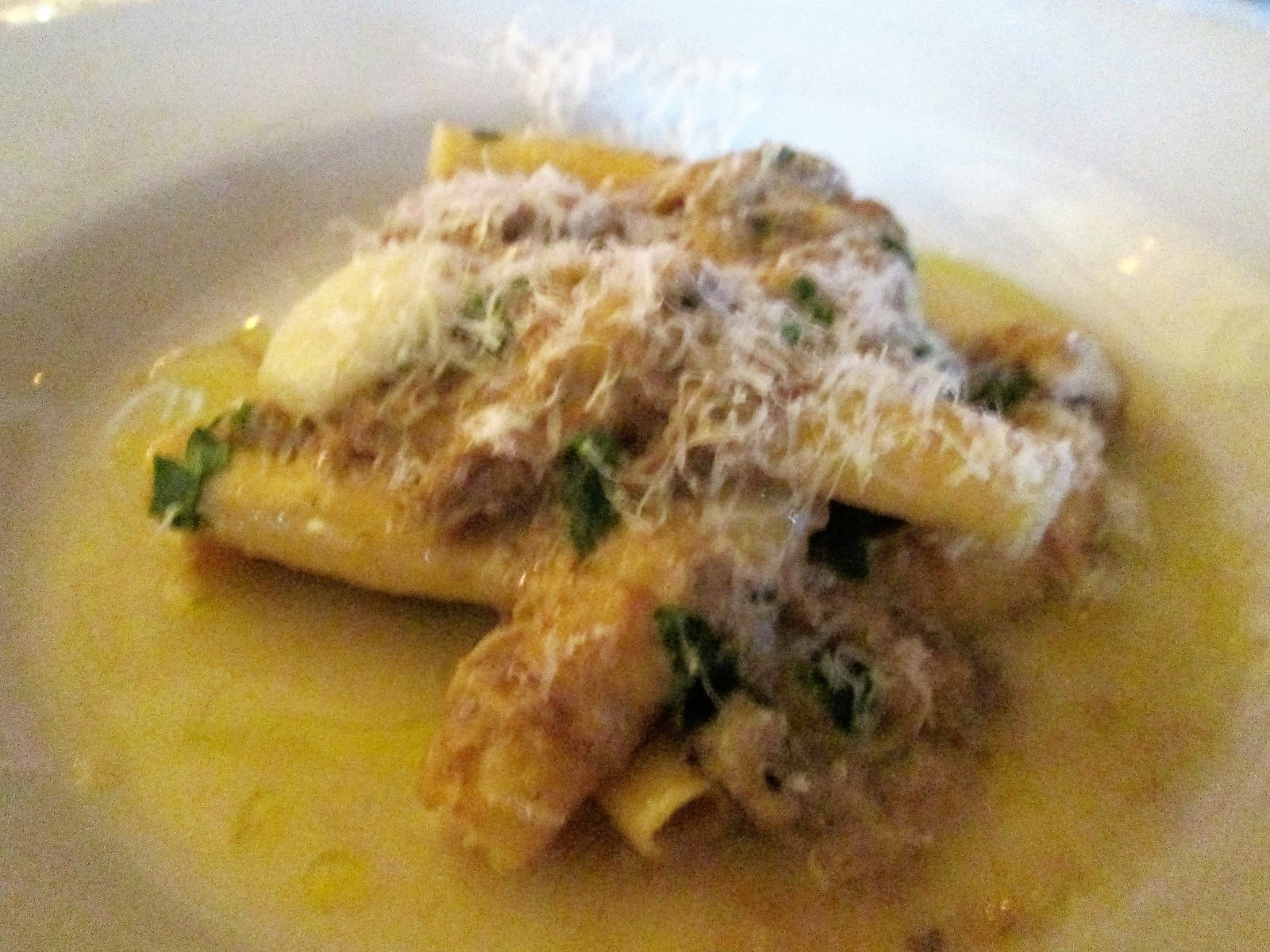 The pasta, four long and thick candeles, had a nice firm chew, but the real hero of the dish was the pork Genovese sauce. The slow cooked onion based sauce was full of rich and tender braised pork. A real treat, something I've never had before, but something down-home and comforting nonetheless.