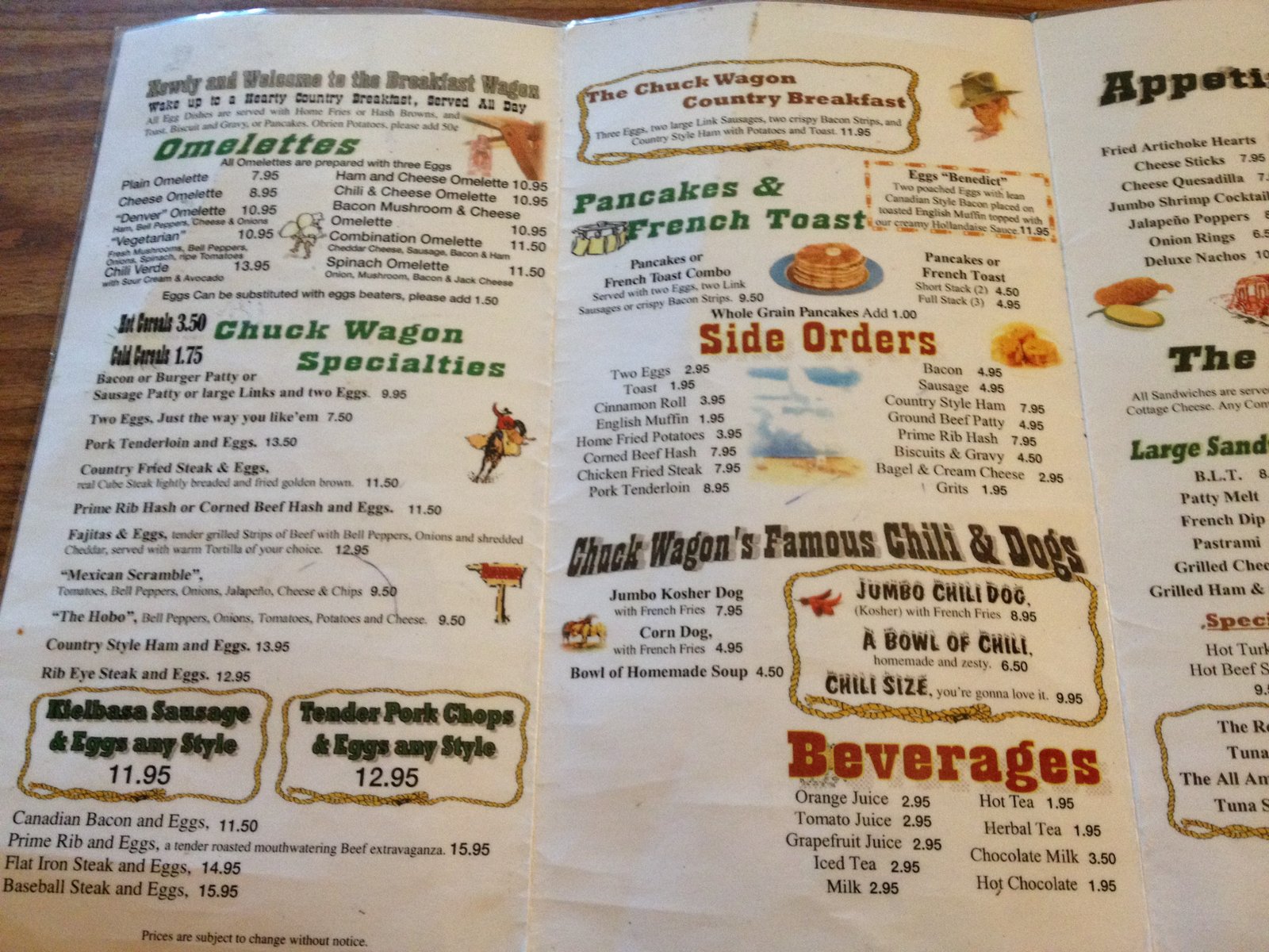 Ever since the summer road trip and meals across the USA with either my brother or nephew, pancakes have become a slight obsession. The ones at Chuck Wagon are notably good; from scratch flavors, slightly sweet, fluffy with a delicate crust .