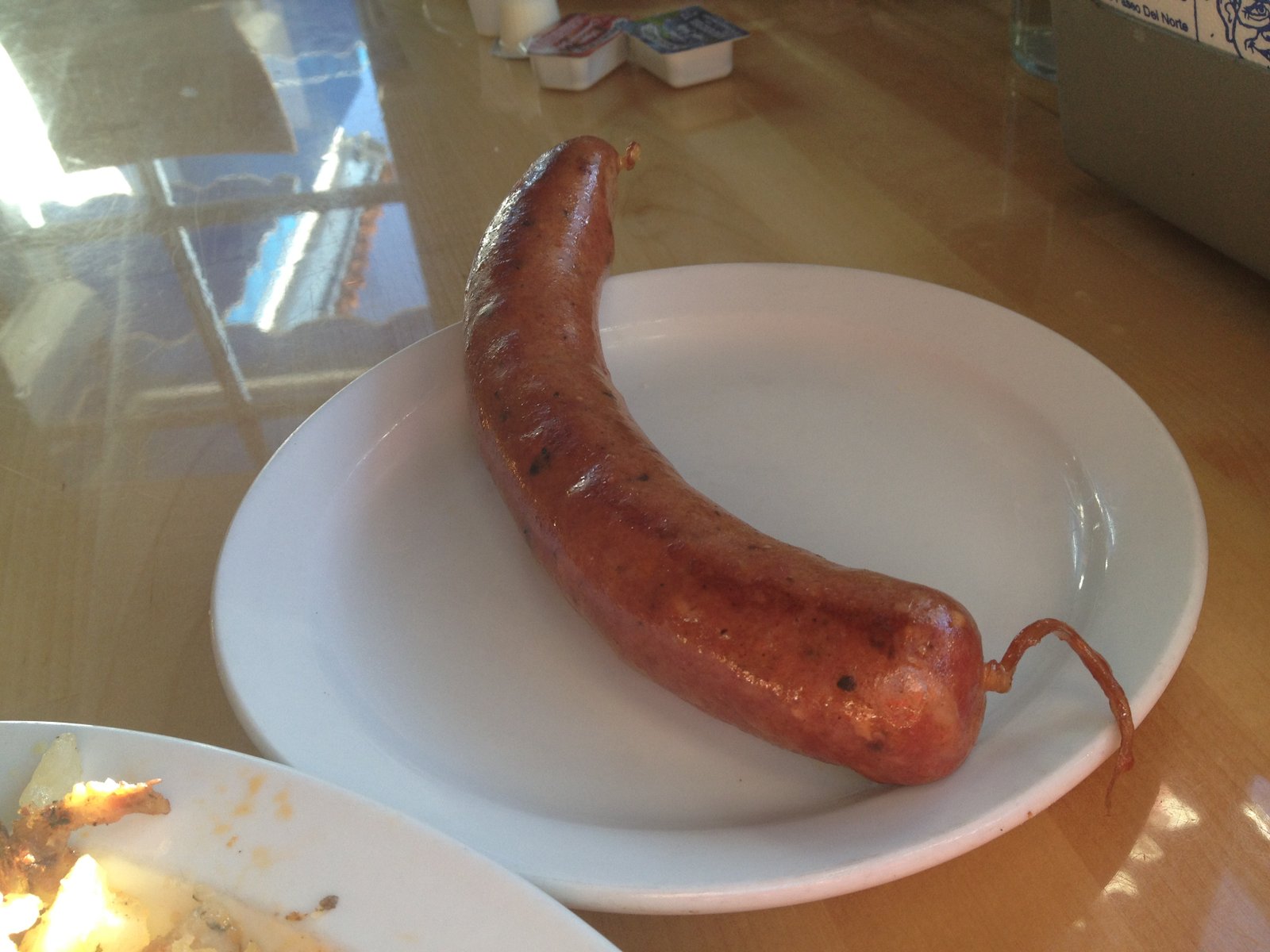 The Mister chose the 'Big John' breakfast($7.98). Three eggs, potatoes, toast (rye) and -all you can eat- meat. Bacon is a choice, but because some people have been overly greedy in the past, now you can only have a single order/it's not all you can eat. Because we like but don't go crazy over bacon, the breakfast sausage and ham were part of the first order, with a return trip requesting the Polish sausage (bratwurst is also a meat choice). The sausages are made here; the breakfast sausages are large and have a hint of spicy red pepper as part of the ingredients. The thick slice of ham is quite wonderful and the Polish sausage is garlicky, peppery and smoked. All in all a great tasting meal.