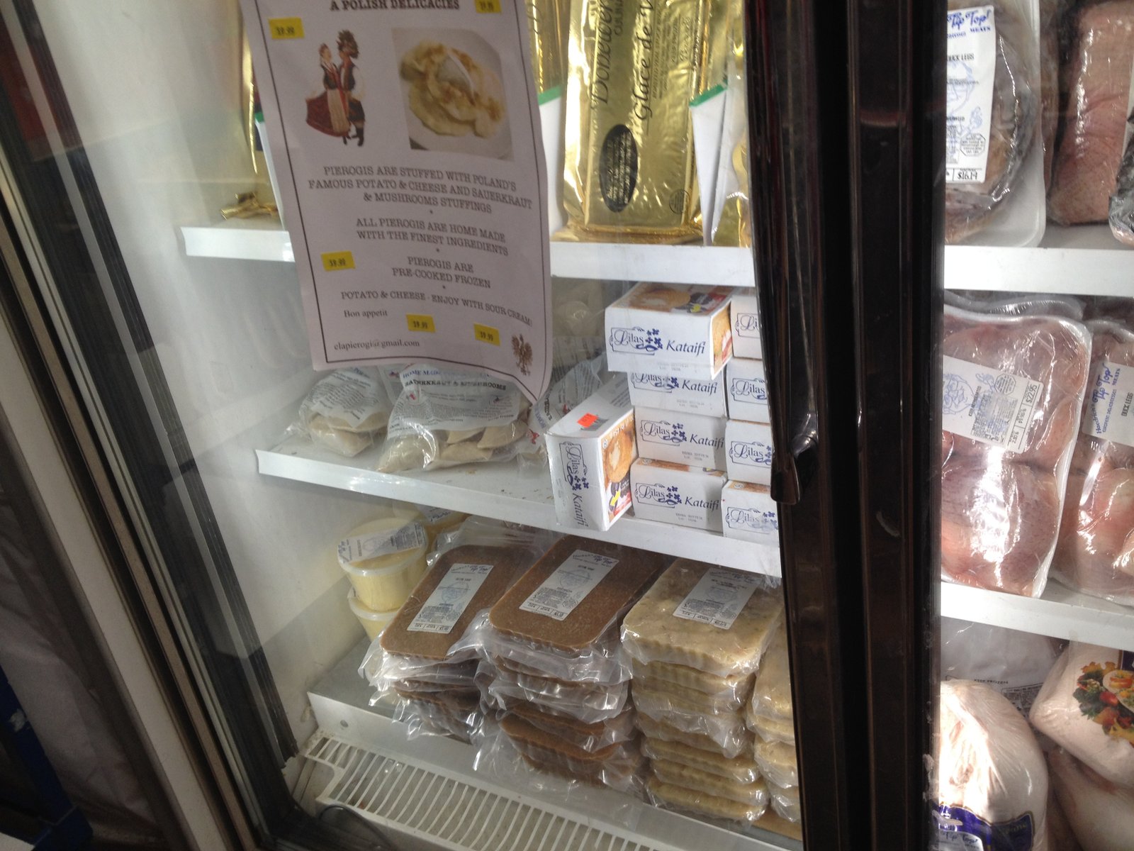 Walking through the store, we checked out the refrigerated section, countertops filled with fresh breads and pastries and the freezer area. Then, there were shelves just past the cash registers where you pay for the store purchases.