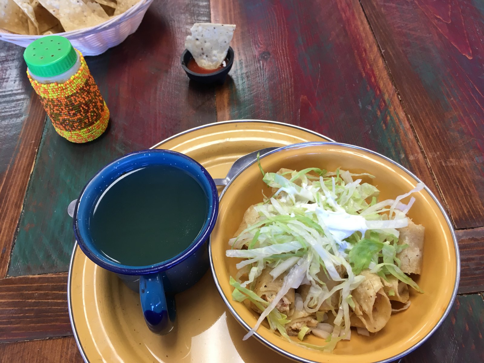 IMG_0011 Kirk had mentioned that Mama Testa was re-opening, but neither of us has done a post.  I've had the chicken mojados here ($10): rolled taquitos, cut and topped with lettuce and sour cream with a mild, chicken based broth on the side; you can pour it over everything to make an interesting soup-type meal. (The beef mojados is beef rolled taquitos and a spicy, red broth).  This is unique and tasty.  Mama Testa 9225 Mira Mesa Blvd San Diego, CA 92126 website