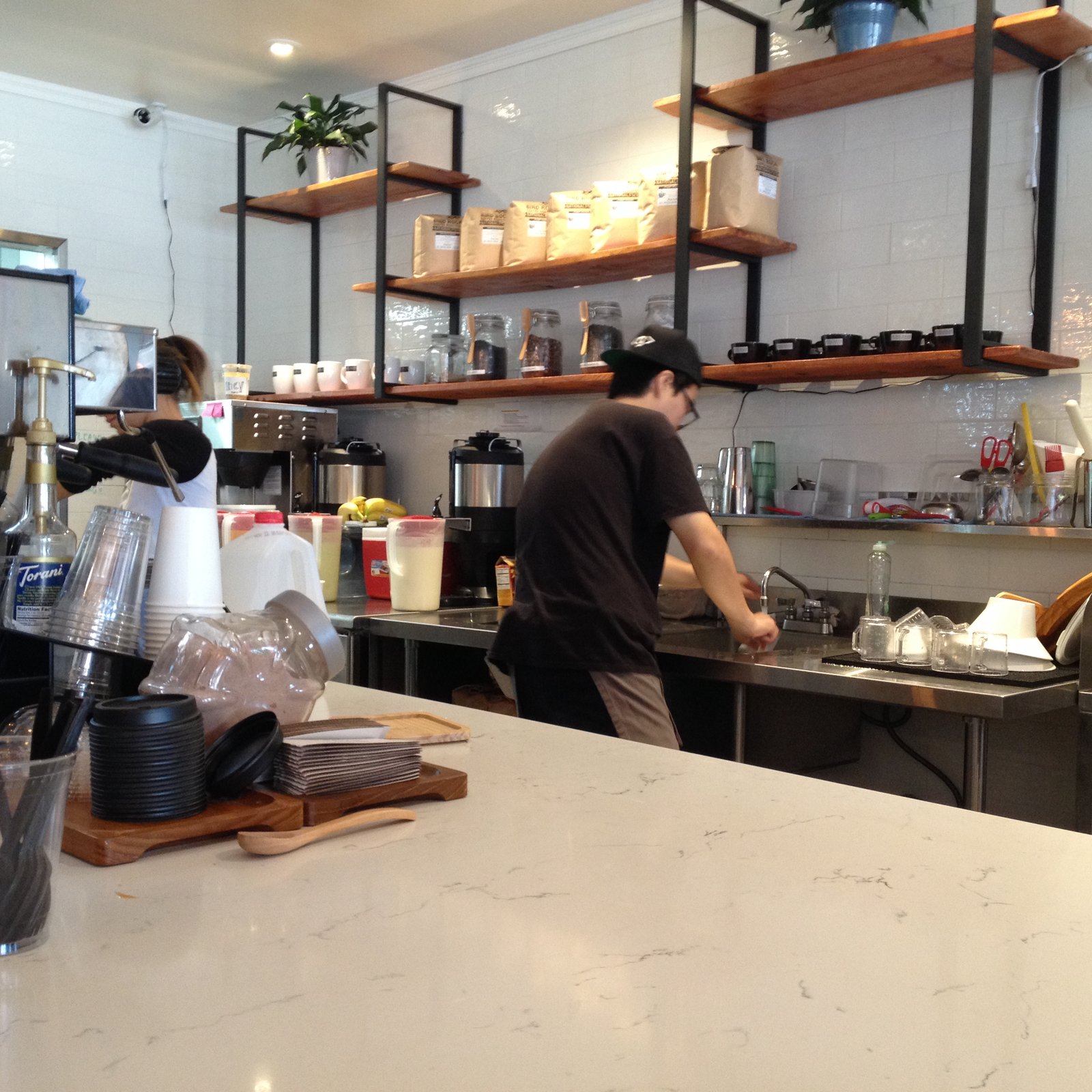 The Mister and I decided to drop in the other day and tried a Chai tea latte ($4.25) and an affogato ($4.50), as shared desserts. The chai tea was subtle in its melded flavors, with a good black tea undertone. We were curious about the soft serve ice cream made here and it was of high quality, natural vanilla flavored and very smooth. Pouring the fresh made, hot espresso over the soft serve ('drowning' it) made the resulting flavor of coffee and cream quite similar to our coffee rolled ice cream from the first visit.