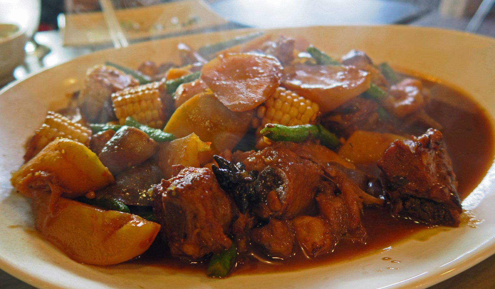 Basically a dish of stewed/braised pork ribs; which is then stir fried with corn, potatoes, and green bell peppers. This wasn't very good; it was basically too salty; the pork ribs were on the tough side. The best items were the corn and potatoes.