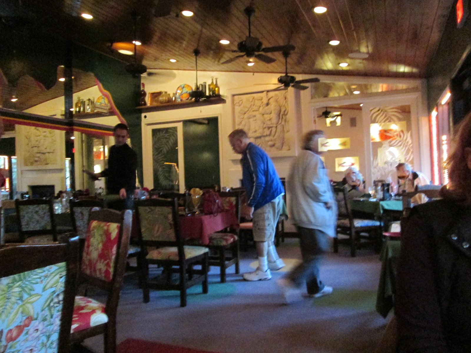 On this evening nobody sat outside, so the resident peacock stared wistfully into the room, aware that he was not going to get any table scraps: