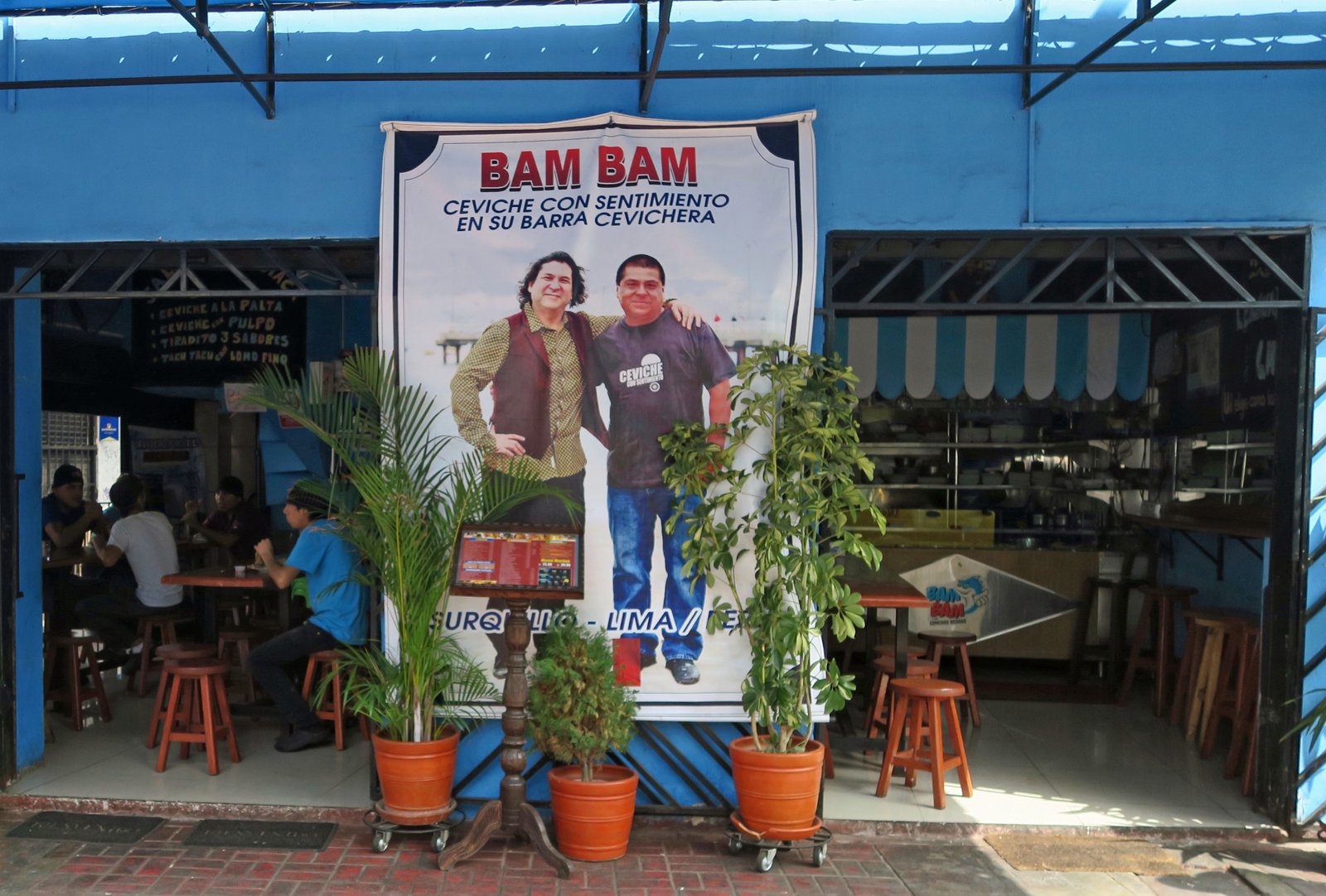 So what to do after having sanguches de chicharron for breakfast, then walking the pork off at Mercado de Surquillo? Well, if you're with the Missus, you'd understand that She'd be wanting more cebiche. There's a shop in the back of the Mercado that I'd heard about named Bam Bam. And upon finding the little shop; it became apparent that Gaston Acurio likes the place as well.