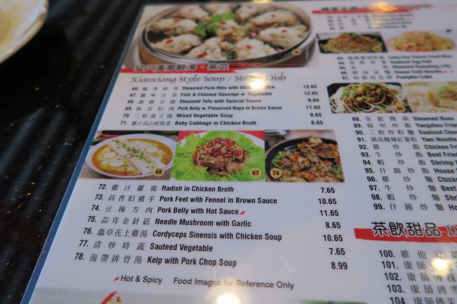 So I had worked my way through some of the dishes and struck out; so the nice young lady told me to order something called "Pork Belly w/ Preserved Napa in Brown Sauce" ($11.65). Not sure what this was going to be; I chuckled when it arrived at the table….it was Mei Cai Kou Rou; which, correct me if I'm wrong, is more of Hakka dish.
