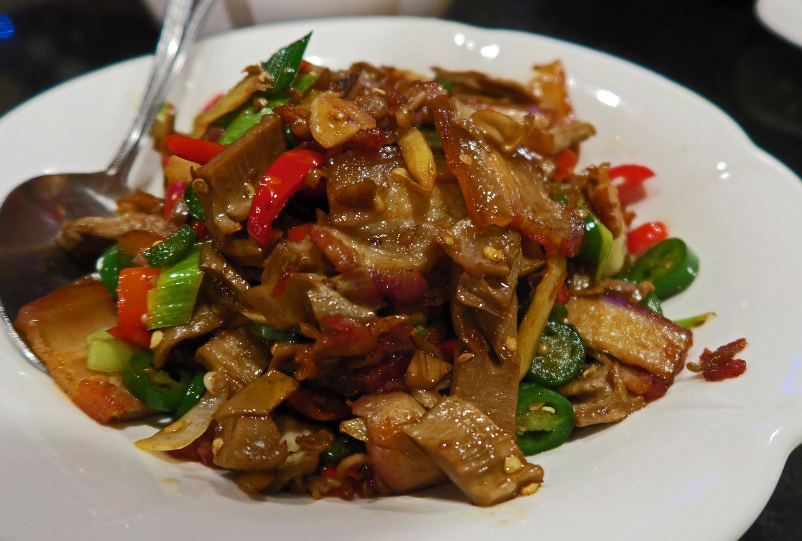 The intestine was not cleaned very well and was too rubbery and we did without a doubt miss the "ma" (numbing) sensation of the Sichuan version of this dish. We did enjoy the Chinese celery in this, but that's about it.