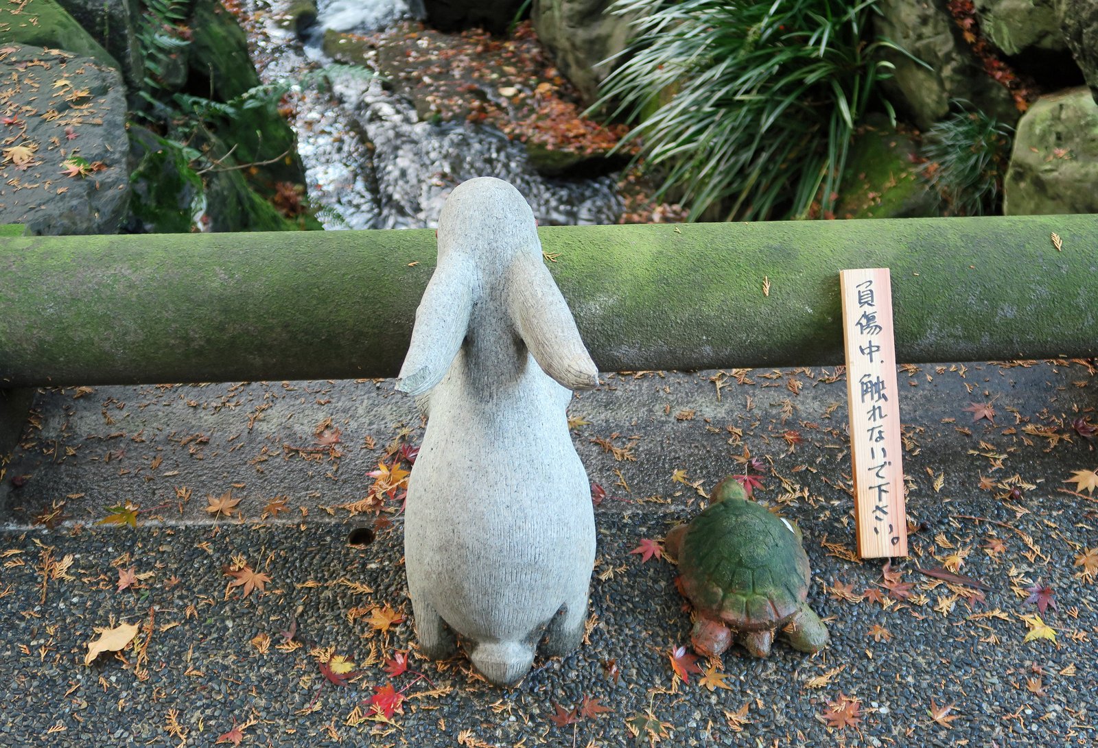 Fairly close by is Meigetsu-in. Meigetsu mean "bright moon", so you'll see representation of rabbits, (remember the Japanese children's story Tsuki no Usagi?) on the grounds. We found this one, right near the entrance to be quite charming.