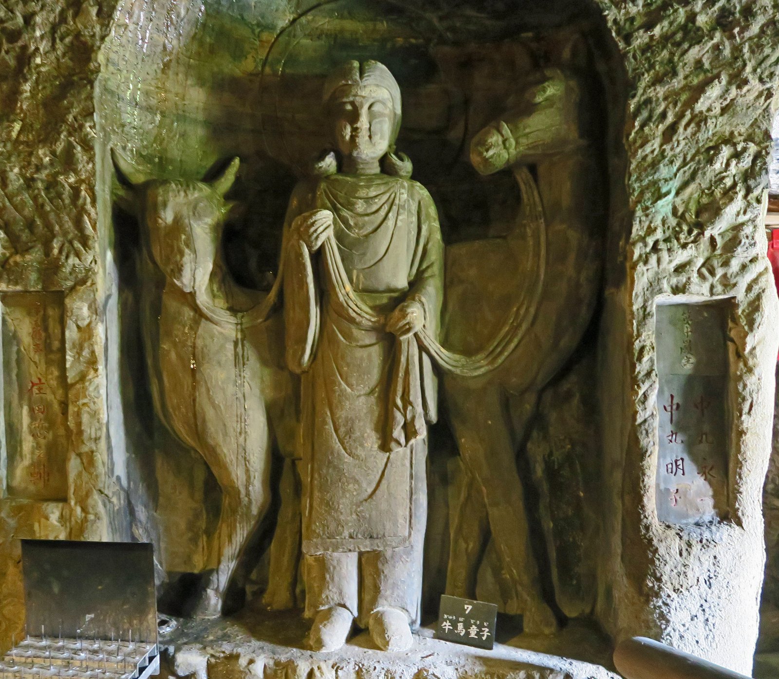 Which contains bas-reliefs of Benzaiten and other Buddhist Gods.