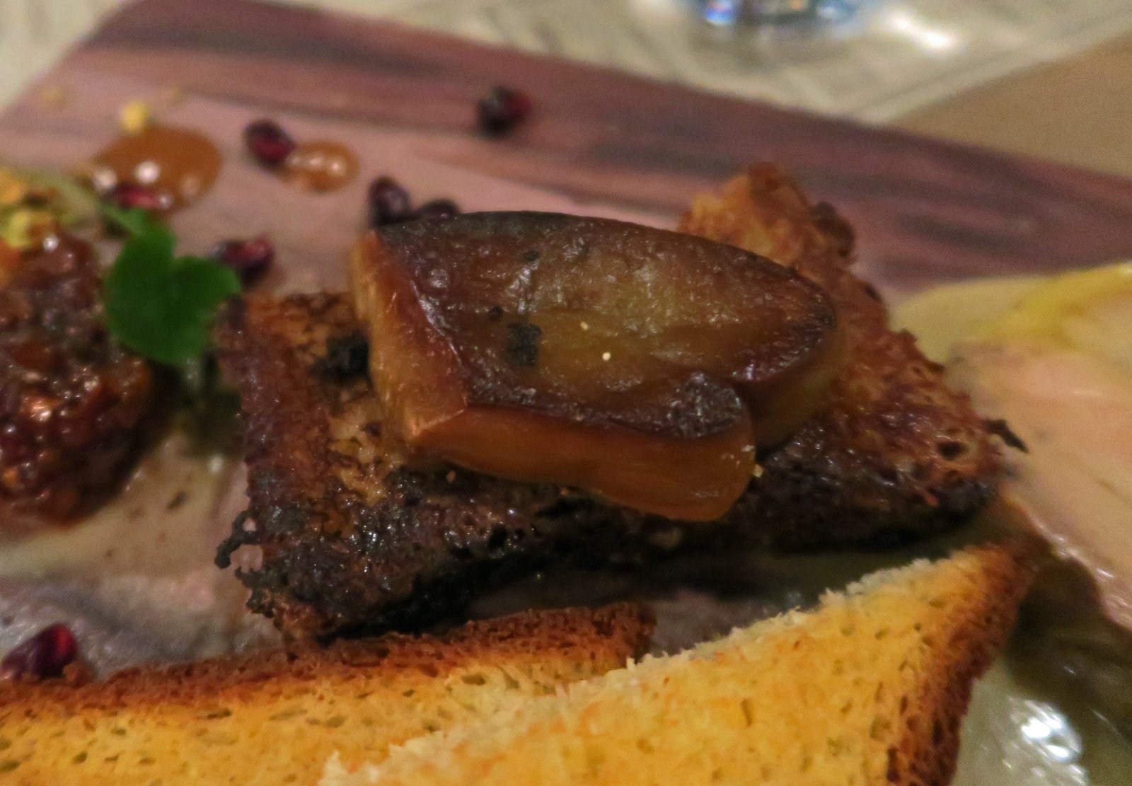 Man, this was so good. The risotto perfect in texture, tender, with a slight chew, no hard granular core. The combination of truffle and mushroom flavors is one made in heaven. And we were definitely there on this evening. And of course we had the foie gras terrine….man, talk about a rich meal.