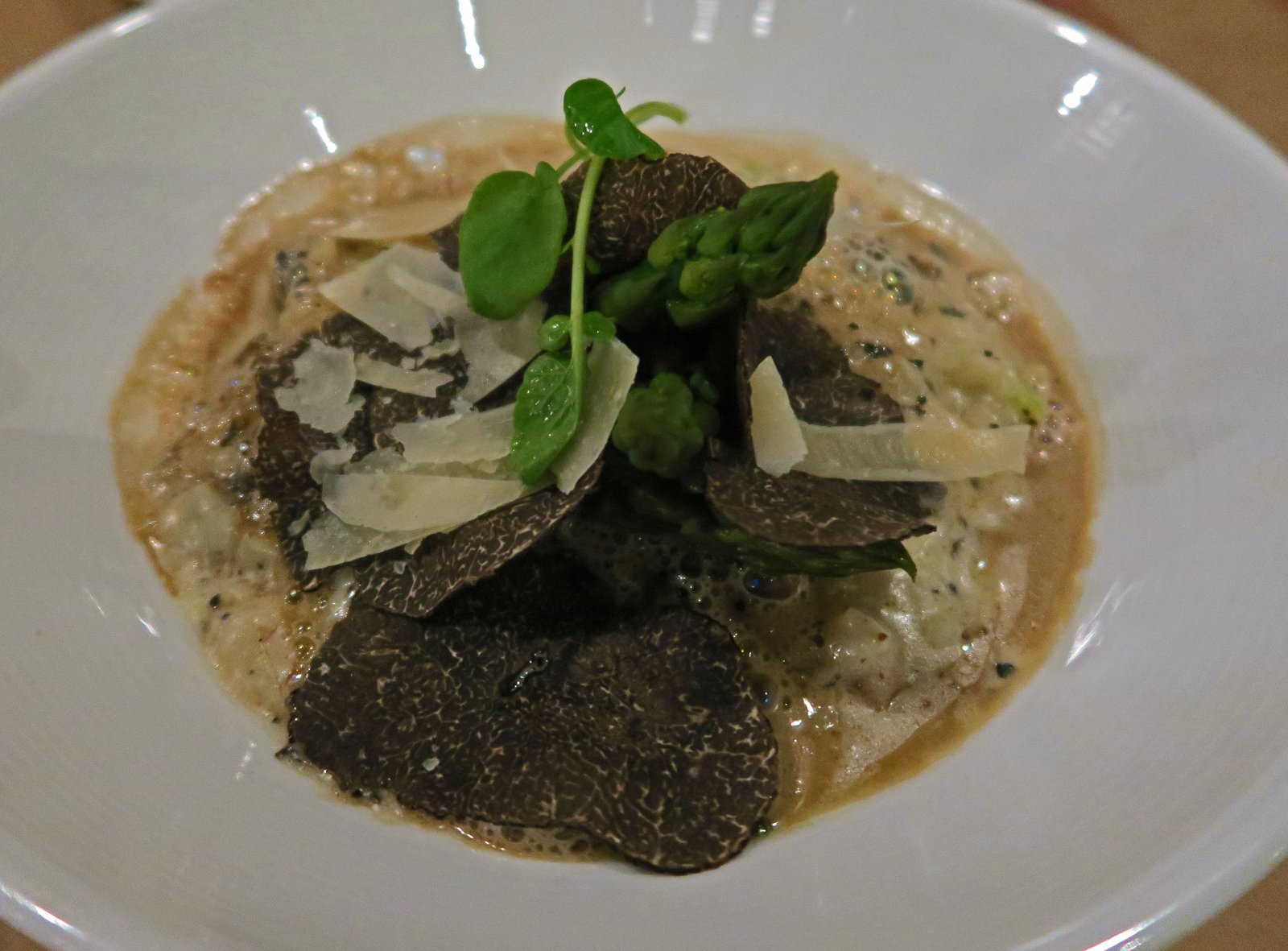 Because there was a special Perigord Black Truffle menu on this evening. Now, having been to Dordogne, how could we resist. In spite of my loathe of par cooked restaurant style risotto. So we got the Black Truffle Risotto ($25). It was actually a good sign that it took over 25 minutes to get to us. And what we got was delici-yoso!