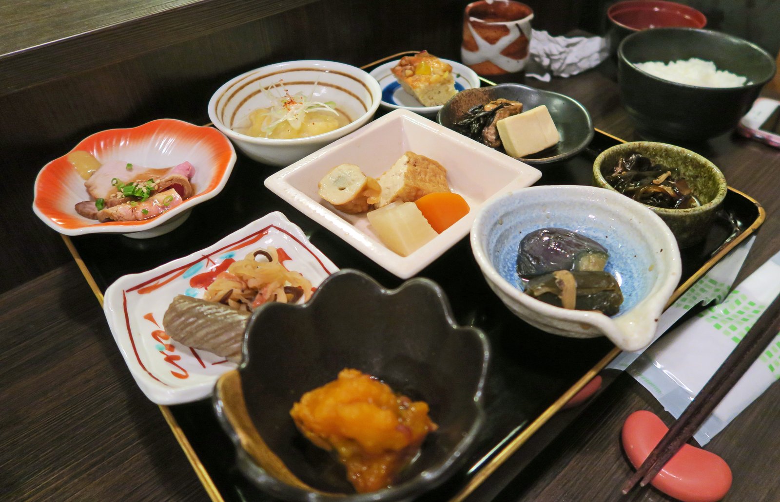 Before we were interrupted by Typhoon Vongfong on our previous visit. I had planned having a lunch at a place that did Obanzai; basically a place that made seasonal dishes, many of them simple, rustic, and vegetable based, created to minimize waste. The dishes I saw just reminded me of stuff I ate growing up. this was almost the antithesis of the very popular Kyoto Kaiseki.