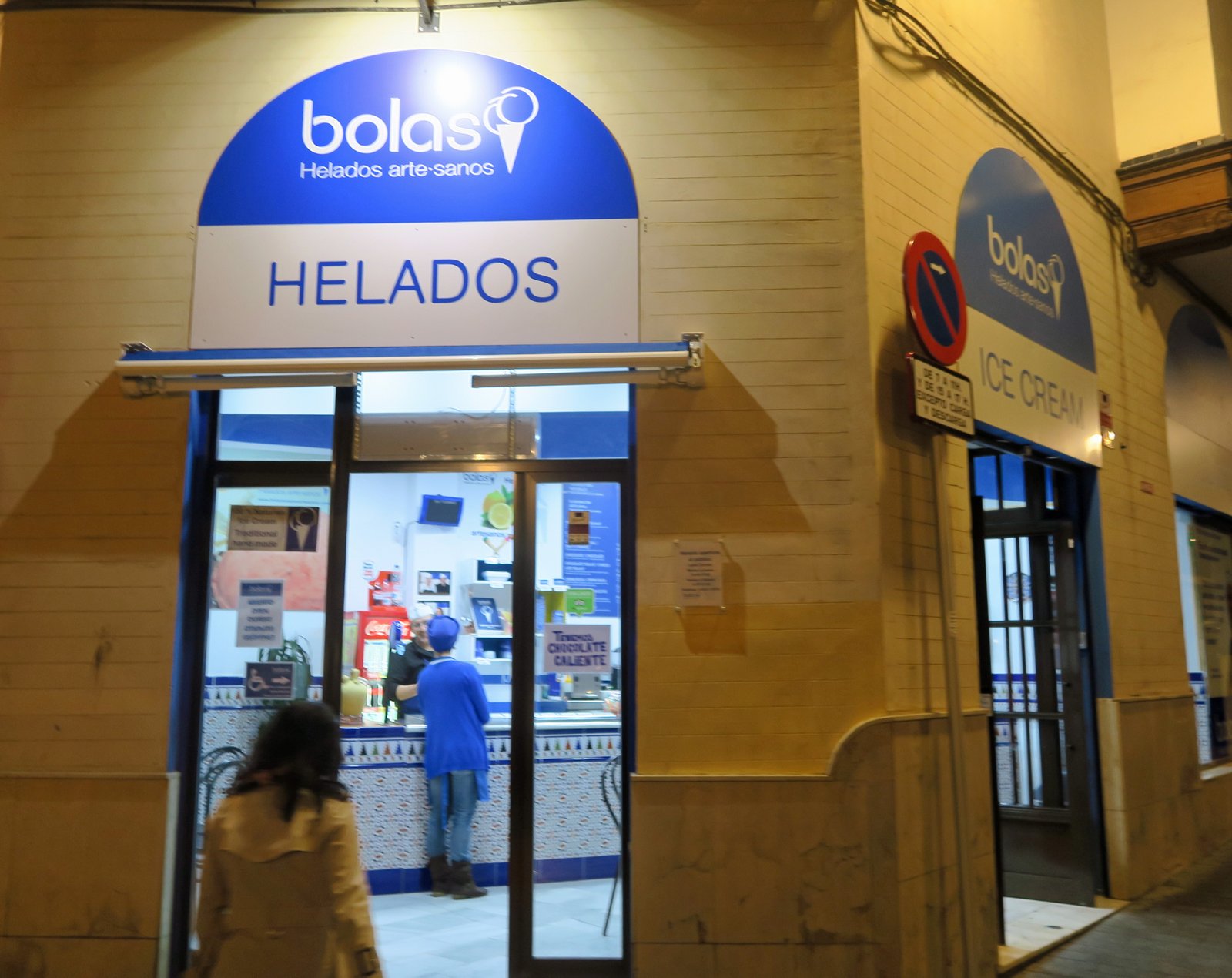 It was Saturday night and Seville was happening. We headed back to the apartment, but decided to stop and enjoy this early (in Spanish terms – like 1030) evening. The Missus had been eyeing out this Helados (Ice Cream) and She decided to step in and get something.