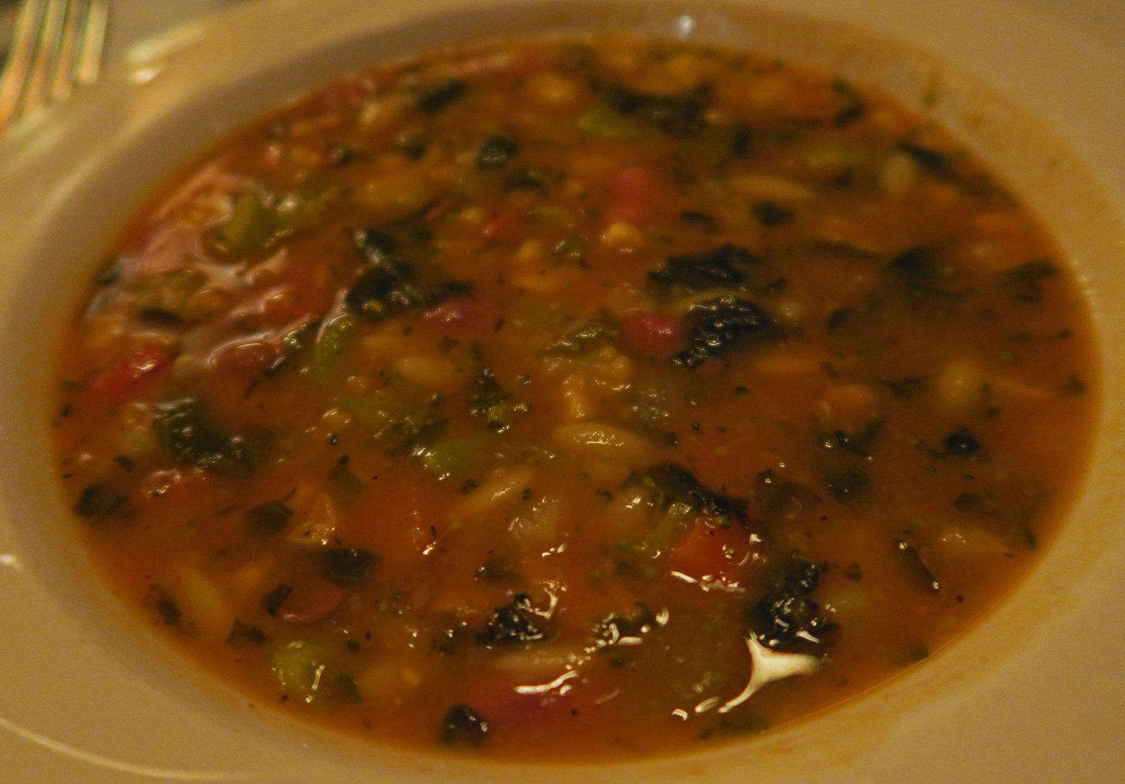 Soup or salad (of course) with your dinner here. We both got the minestrone, which was very tasty.
