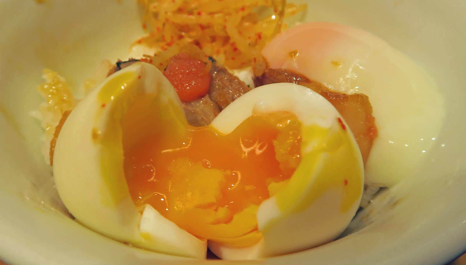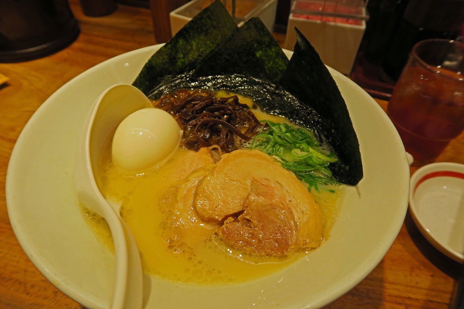 Call us boring, but we'd enjoyed ourselves so much on our previous visit to the Osaka location that we basically got the same thing. The Shormaru Special, what I call a classic tonkotsu with chashu and egg. And of course, the Missus got Hakata Chikara Meshi, chashu rice and an onsen tamago.