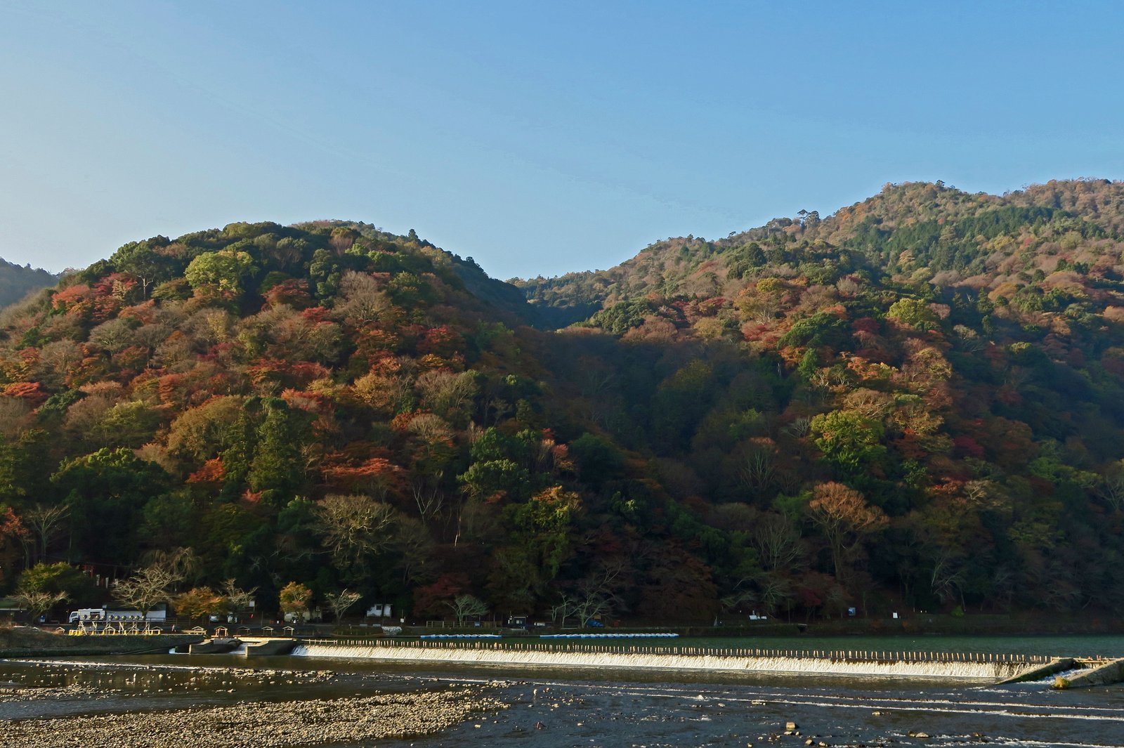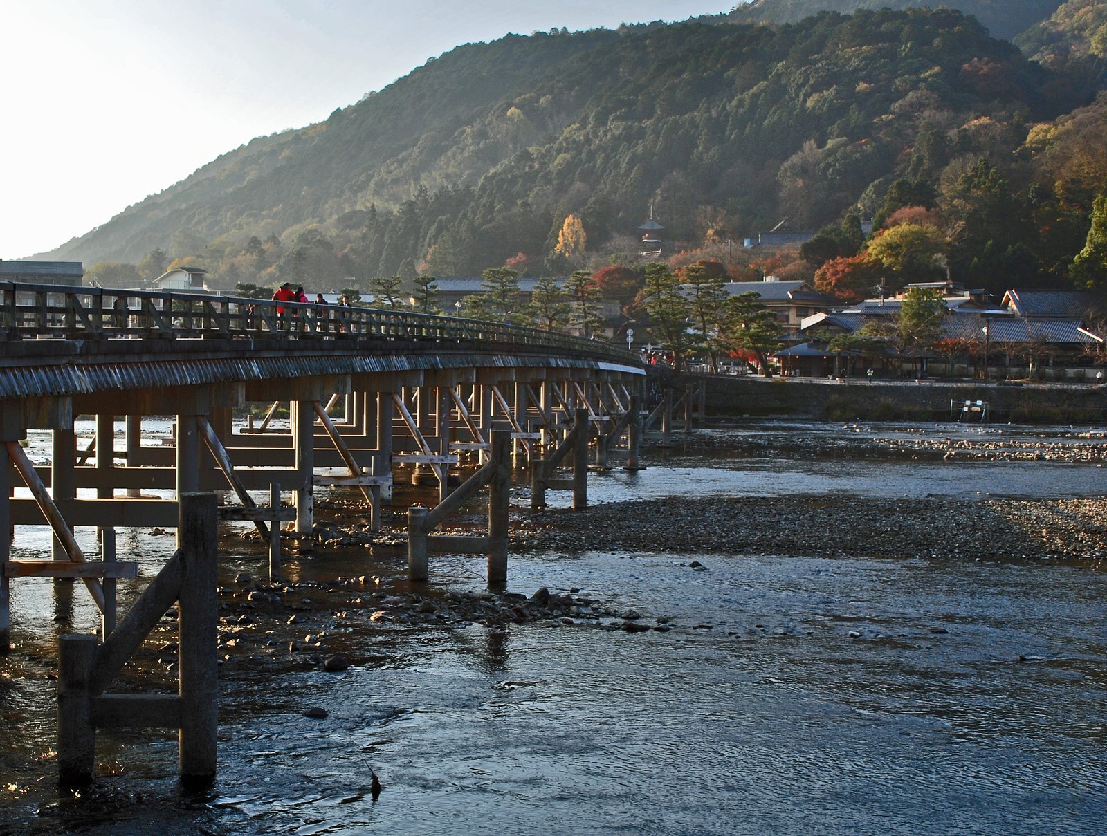 It was a slightly hazy, but beautiful day….the air so clean. We walked out of the station and headed down what looked like Arashiyama's main street. And walked over to the Togetsu-kyo Bridge.