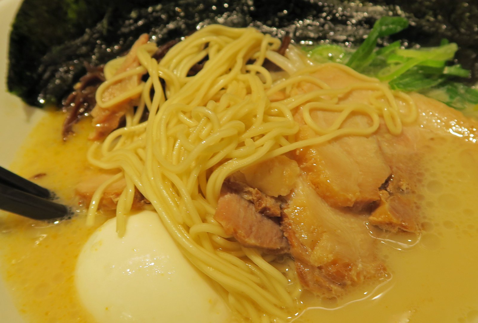 The broth was nice and rich, but not oily nor too fatty. The flavor is rather delicate. The chashu was tender and nicely flavored, the noodles just perfectly al dente for my taste.