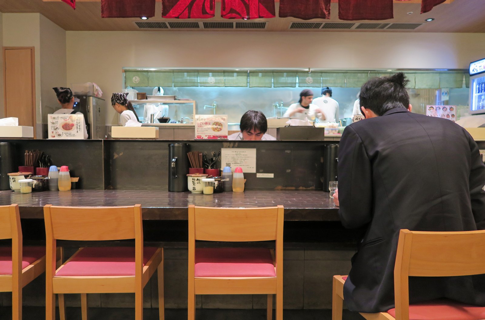 We got our ticket at the vending machine, entered and was seated quickly…….it seemed like all the customers in the shop were Salarymen.