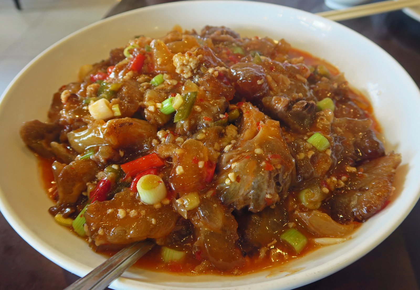 Candice had mentioned a beef tendon dish that was really good. There were several on the menu; but I went with the Beef Tendon with Pickled Pepper (Pa Jiao). And while this really didn't have very much Pa Jiao in it; it was, by far, the best dish of the meal.