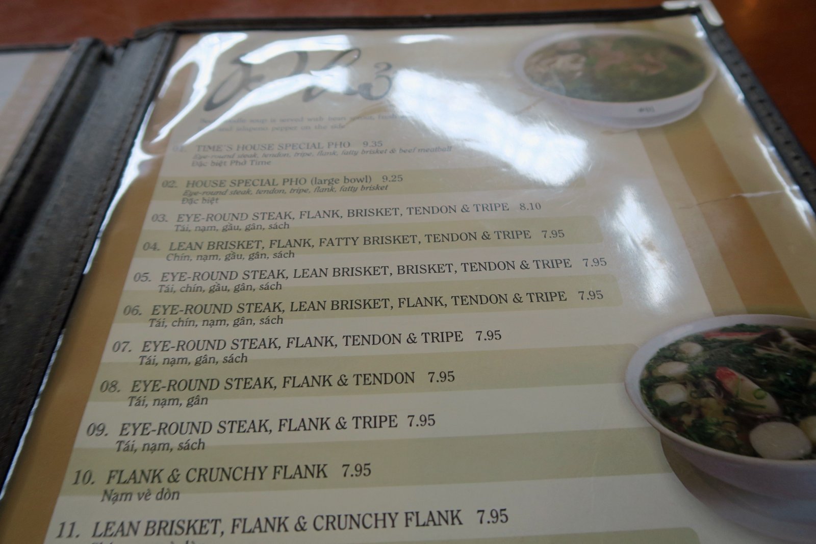 The menu is typical of your neighborhood pho shop, though the prices reflect this neighborhood; Pacific Beach. Though, of course, pho is hitting ten bucks a bowl at Pho T Cali. Another thing they have in common with Pho T Cali on my visits…I was the only Asian in the place on both visits.