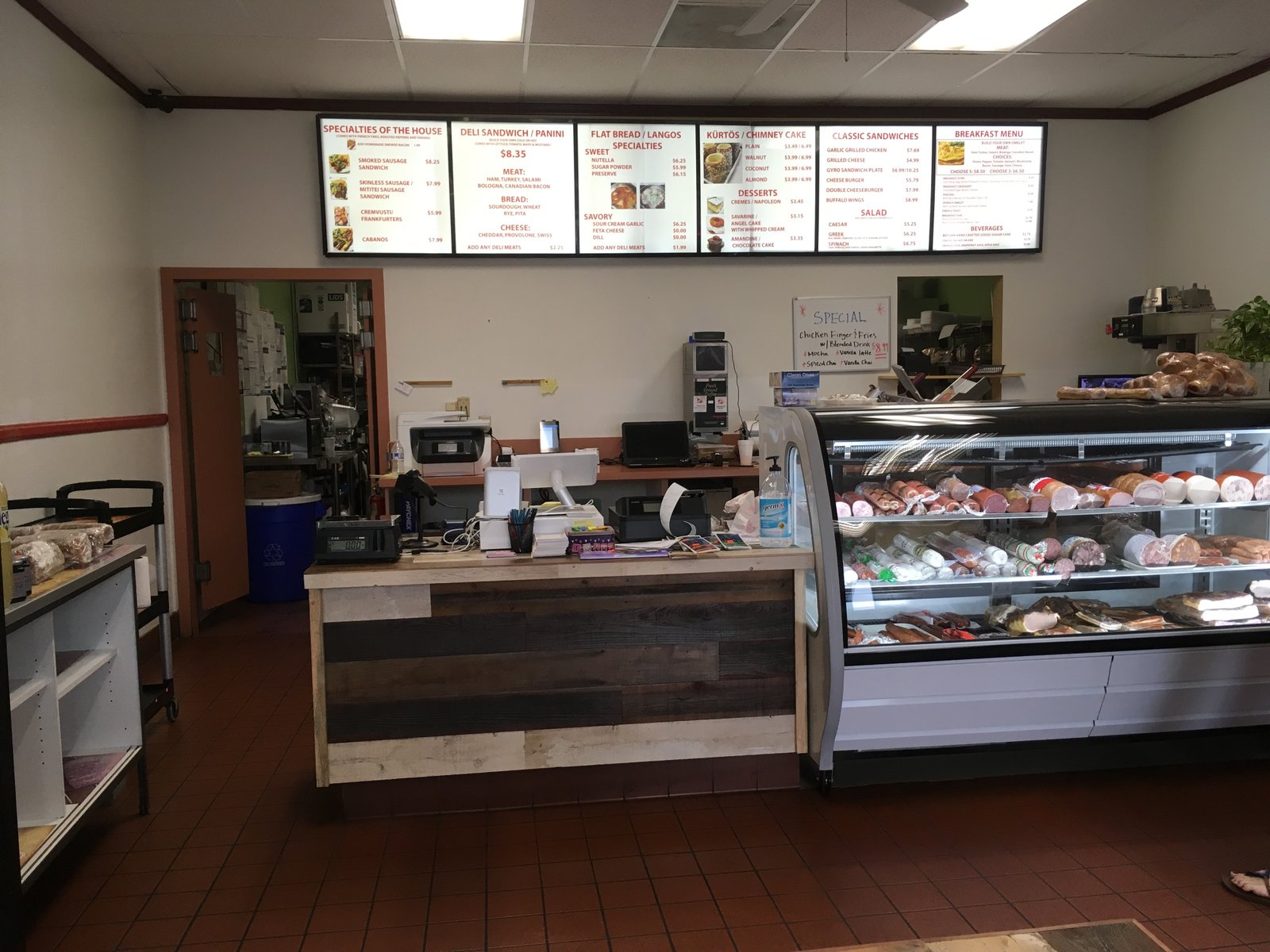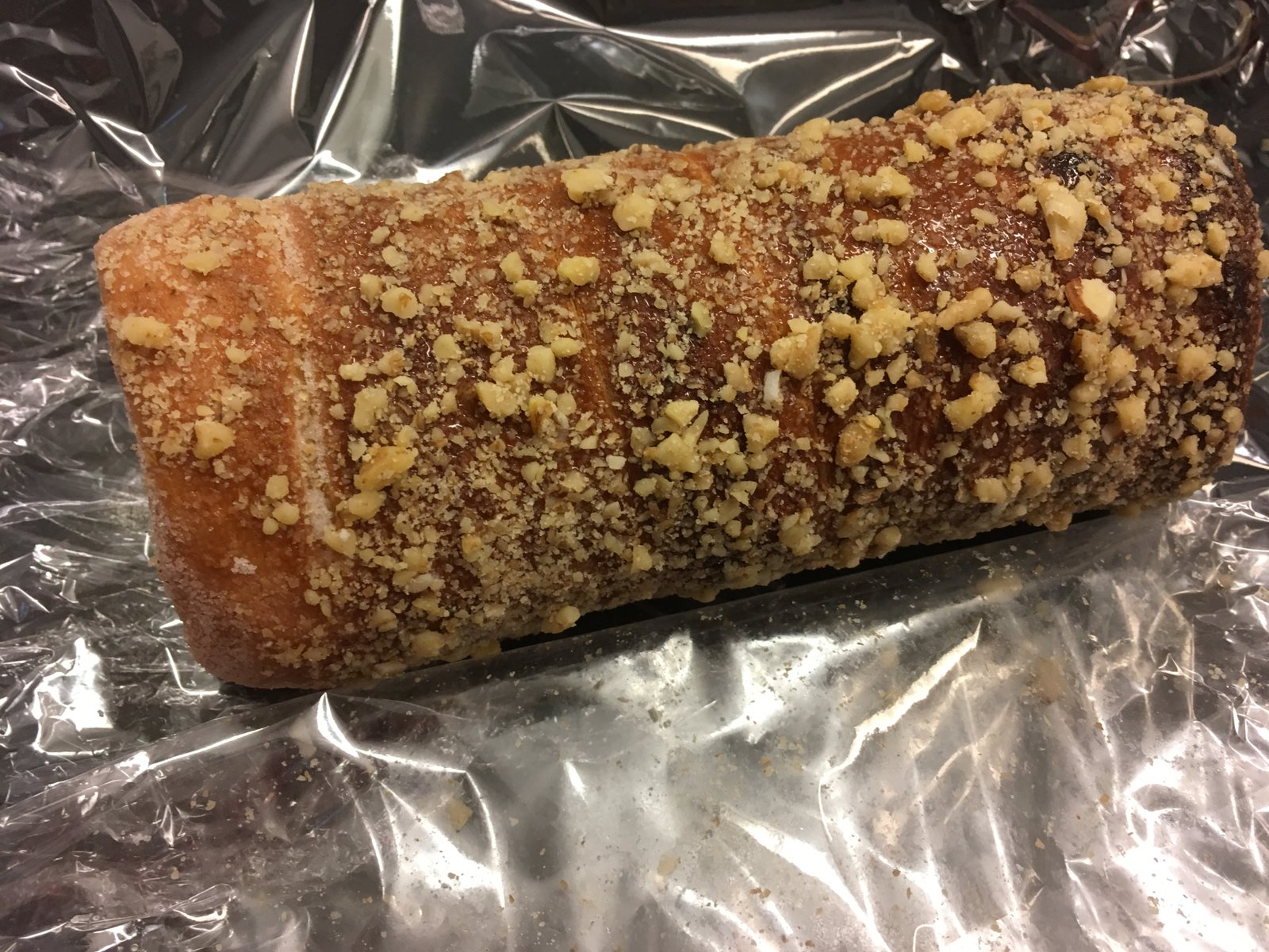 On the menu board is "Kurtos"– Chimney cake. The available cakes are to the left of the cash register. I had heard of this delicate dessert, but never saw it up close. I had to purchase the walnut version ($6.99)(there are also plain, coconut and almond versions).