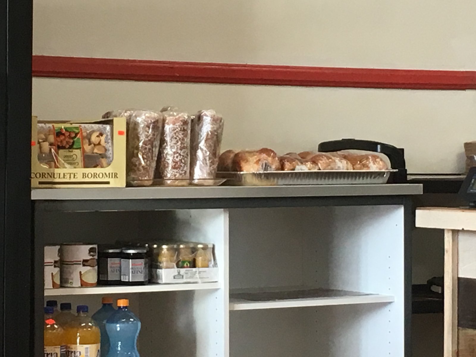 I asked about the menu behind the counter and an offer of a sample of mititei (skinless pork/beef sausage) to be cooked for me was made. I began to peruse the small deli and grocery while waiting.