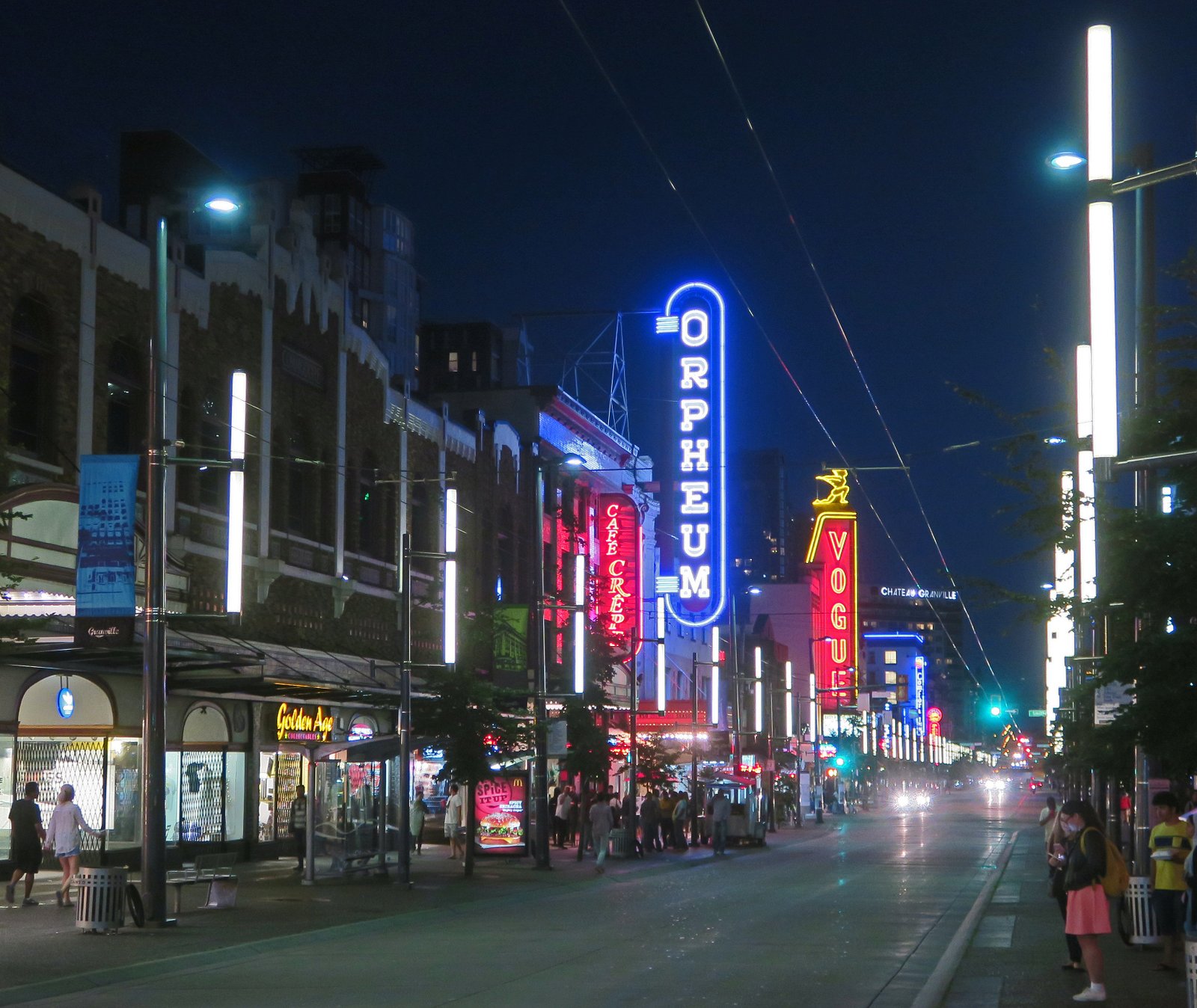 Night seemed to fall rather suddenly as we walked back to our AirBnB after dinner at Miku. We decided to stroll around a bit and since we had just arrived that afternoon, familiarize ourselves with the surrounding area.