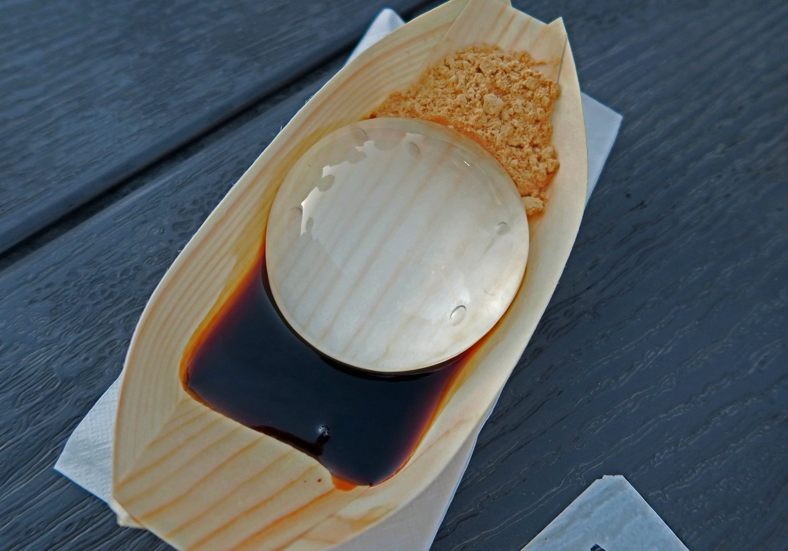 And soon folks started coming around asking what this stuff was….we actually offered them a taste if they wanted one….but most of them just looked kind of, well, puzzled. Anyway, this was "meh", sugar water and agar…..I prefer just straight up Warabimochi coating in kinako to this.