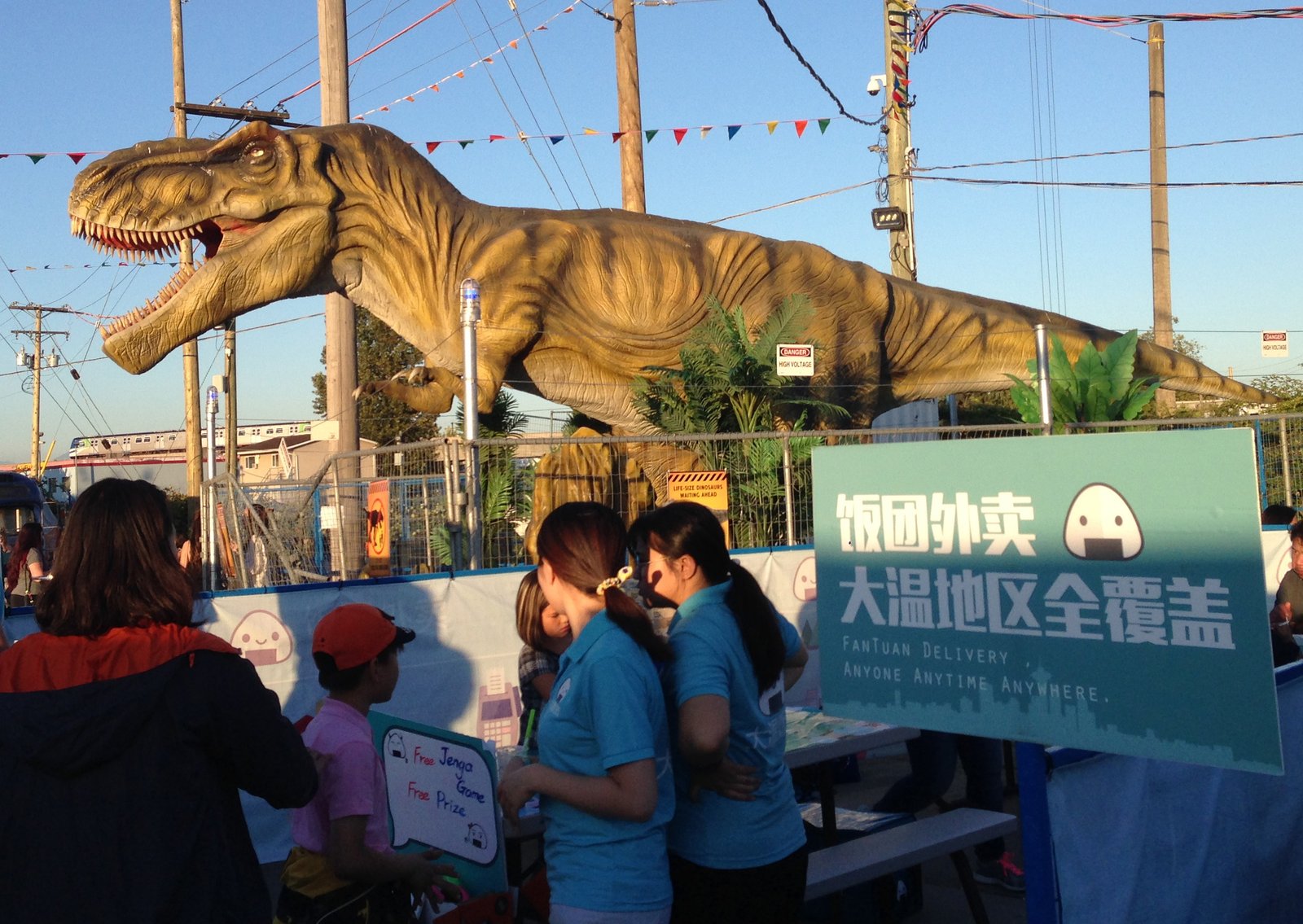 Our table was next to the Prehistoric Park area and while taking a look at the photo of the T-Rex below, it wasn't the replica of the dinosaur that caught my attention; but the sign to right that said, "FanTuan Delivery, Anyone, Anytime, Anywhere"…..I don't think San Diego is included in the "Anywhere" though.