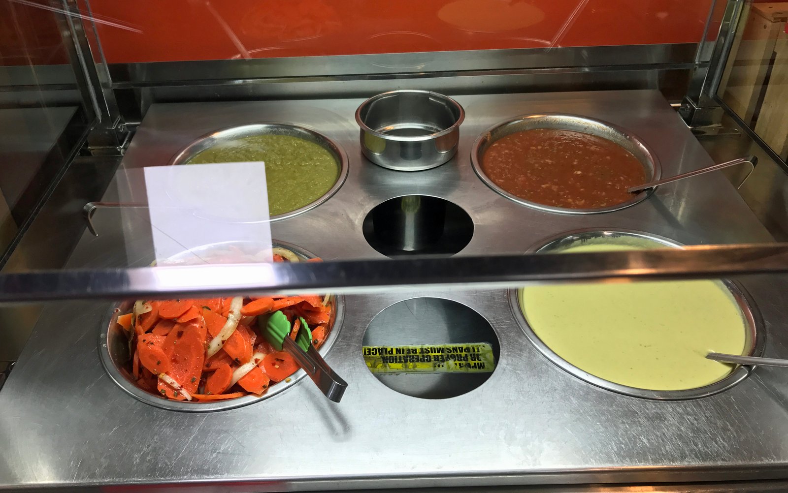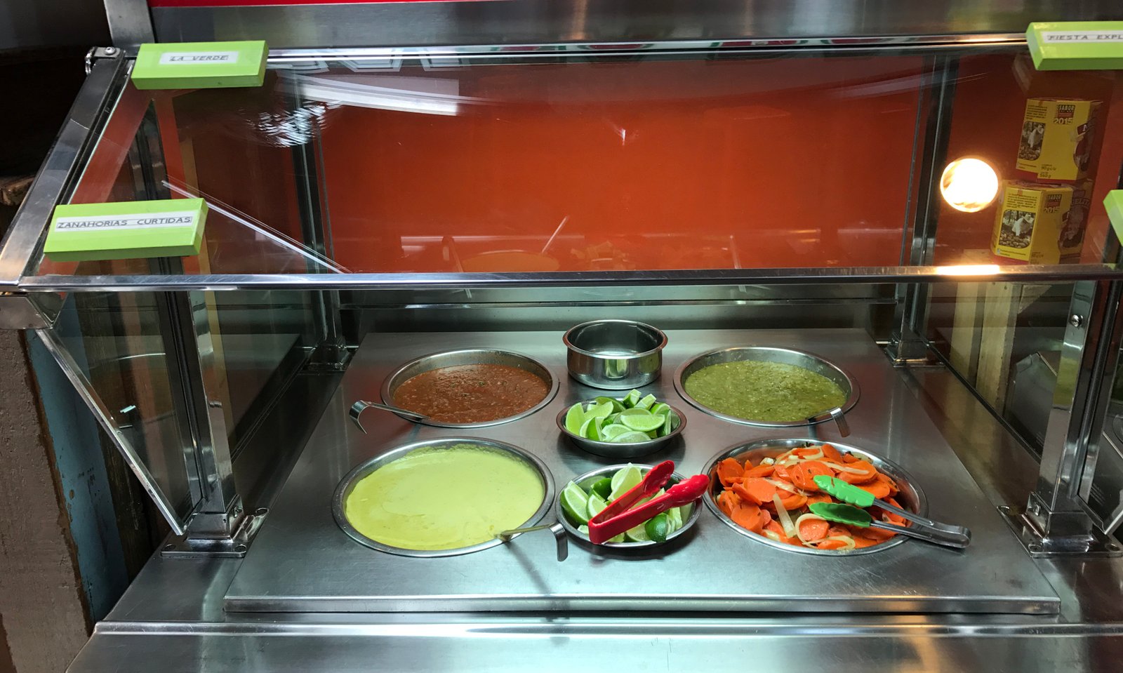 I had to crack up when I got to the salsa bar; notice the Salsa Roja is labeled Salsa Verde and so forth.