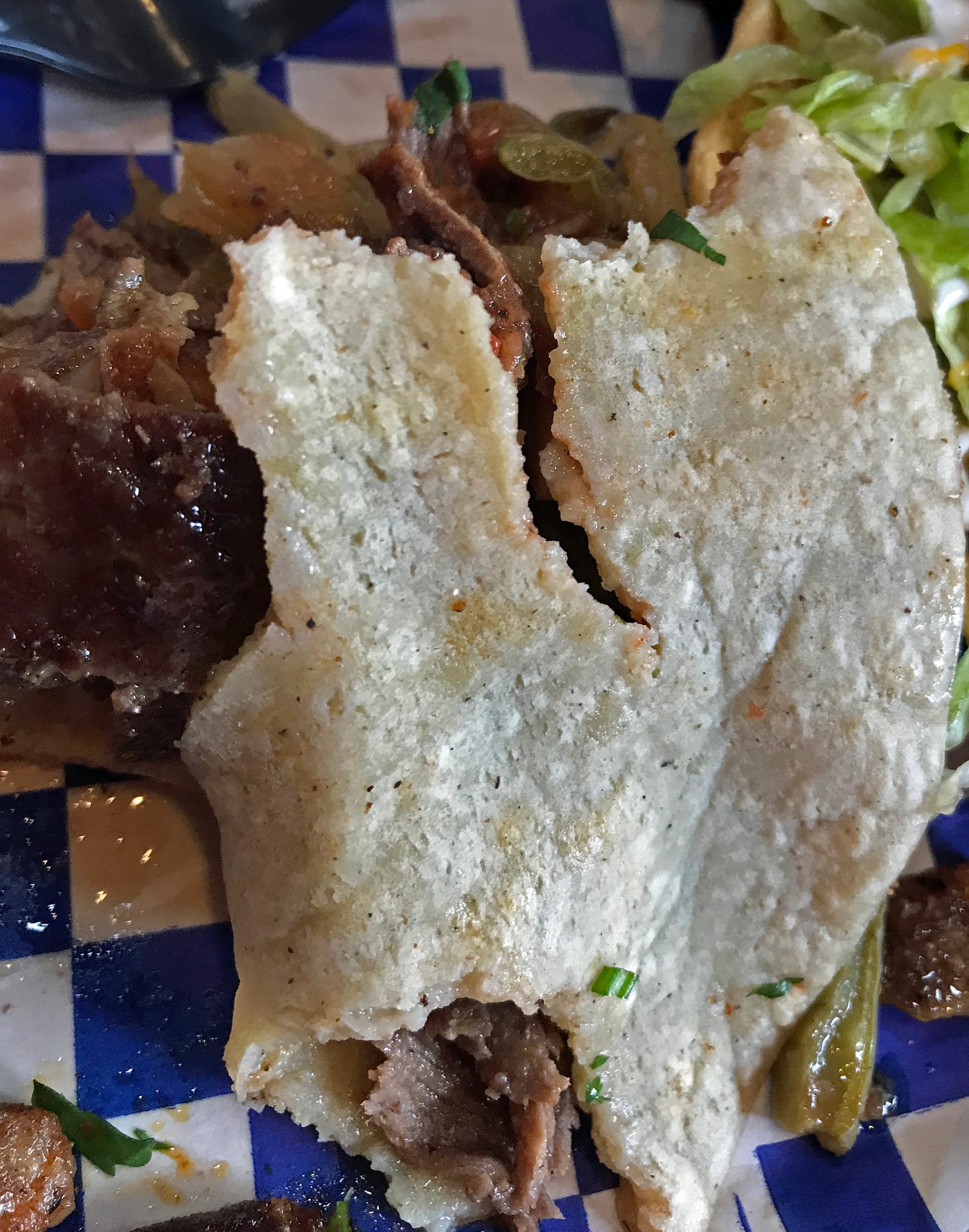 Along with the nopales and onions like the El Perron and griddled potatoes which were nicely seasoned. This had a certain greasiness to it and again the tortilla was not up so the task. It was one hefty taco though; that is easily worth the three bucks on taco Tuesday.