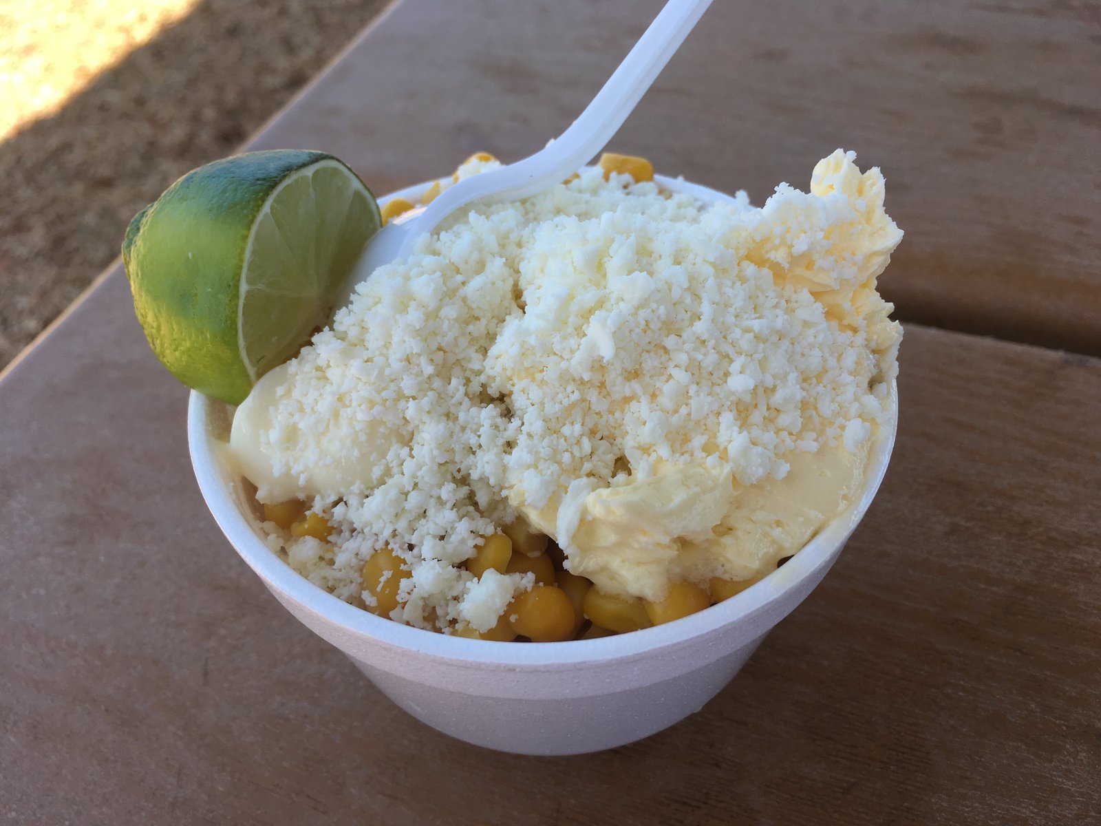 and ordered a cup instead of an ear of corn at the Fiesta Village. Topped with butter and Cotija cheese, I also added lime; this was a very large portion; more than an ear's worth of corn.