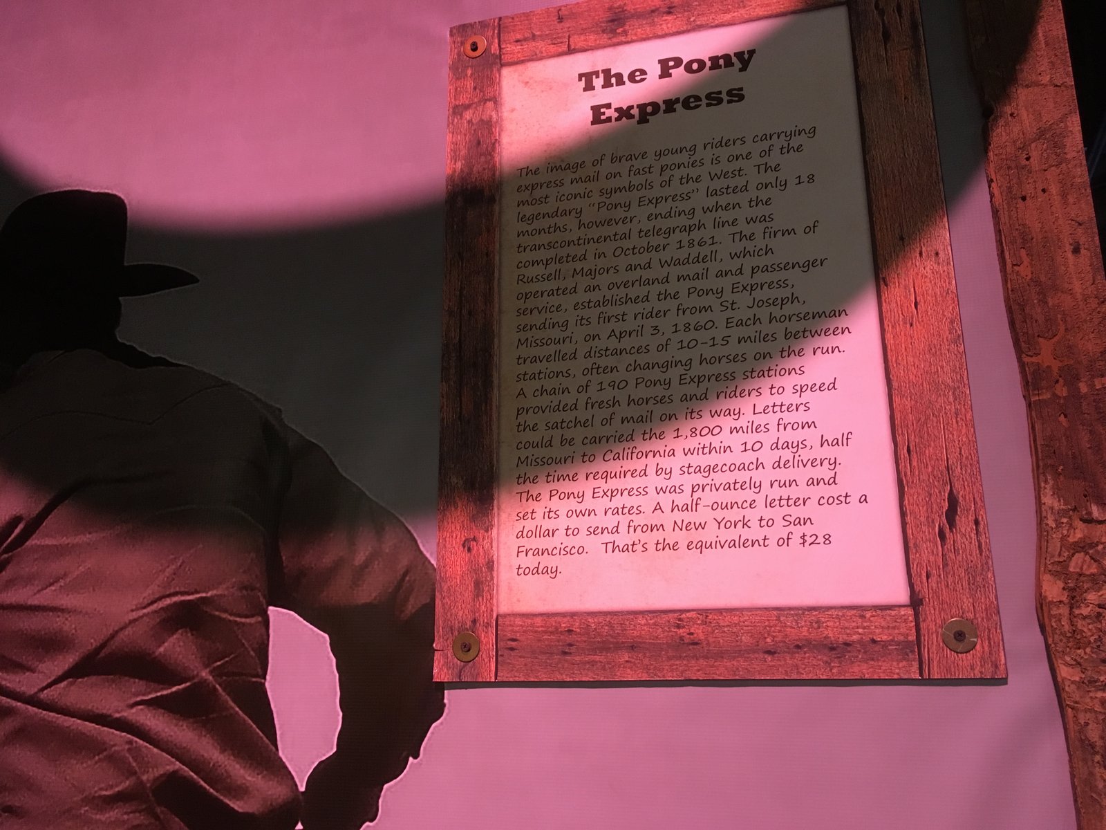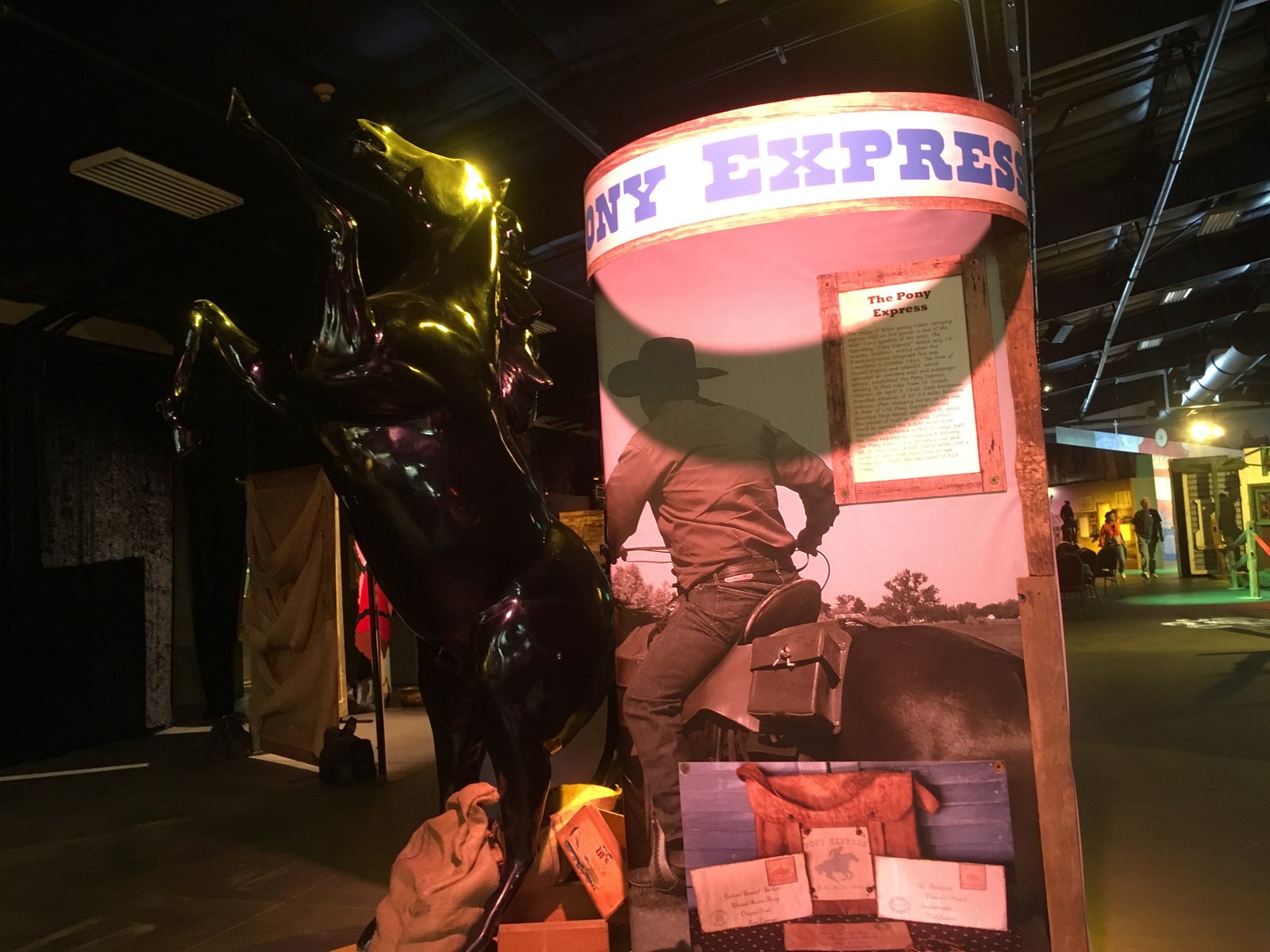 There are also several areas in this shaded outdoor area of the Fair, serving some 'fancier' food choices along with adult beverages. The Theme Exhibit (to the right of the entrance) has live entertainment, facades for photo opportunities and tons of information about the expansion of our United States West of the Mississippi (including this nice display about the Pony Express-reminding me of a stop on our summer road trip last year (bottom photos of this post).