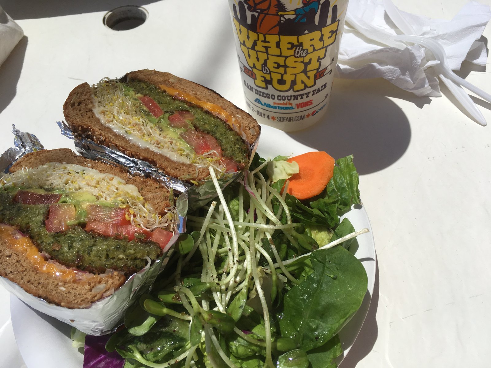 I thought a bit before responding, Seth. You are almost a ‘first timer’ and I have added some thumbnails to the bottom of this post; would simply recommend that you go slow, with smaller or shareable things. I do try things I can’t get during the rest of the year, like the cream puff and apple rings/apple fries/apple tower…even though Roxy’s is in Encinitas, when we go there, I always want the soup and not a sandwich…There are many ‘on a stick’ items available too… Just walk around and enjoy. Make sure to get discounted admission tickets (or enter a Home and Hobby daily contest to get in free if you are planning on a certain date) and use the free parking-more $$$ to spend on foods!