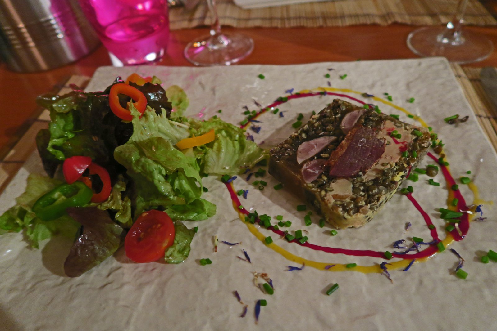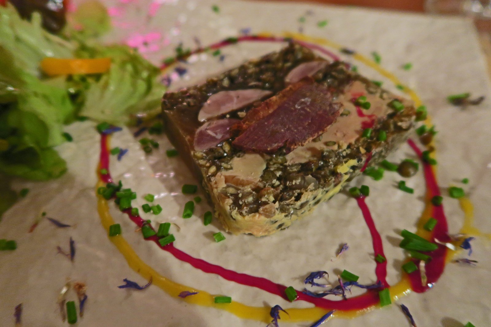The Terrine (19€) arrived first and looked quite pretty, though the presentation seemed a bit dated.