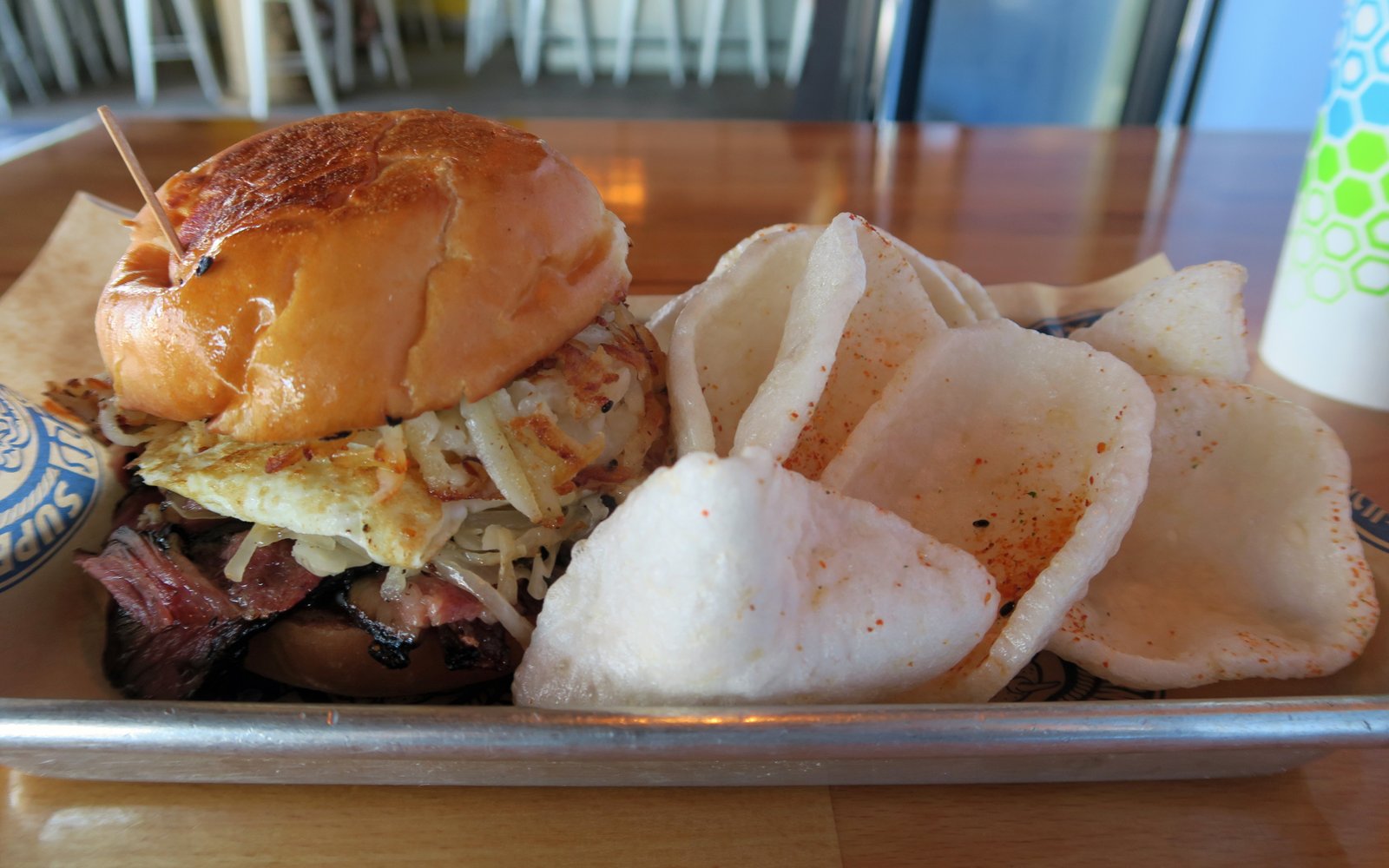 This was a good sandwich! I think it's the thick cut, not overly salty, griddled pastrami that really brought a lot of flavor and a bit of crispness to this, there was even a sneaky touch of spice hidden in his forest of food. Working in tandem with that buttery roll, this was an over-the-top sounding sandwich with flavors solidly rooted in what I expected.