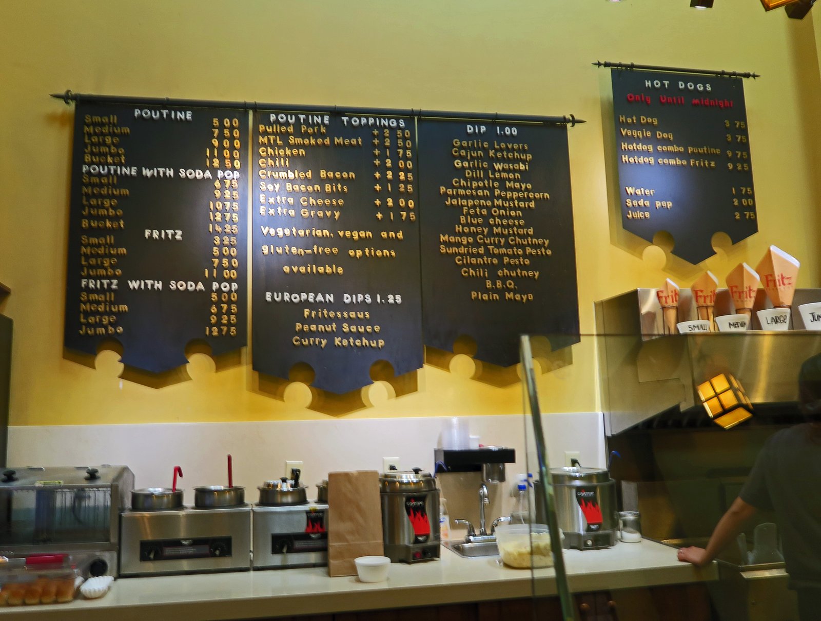 You see; the Missus said if we were going to have a last snack, we should do it right and get some poutine. After all, our first meal when we arrived was poutine and much to my surprise, the Missus loved it. Fritz is legendary for being one of those "late night post clubbing munchy" sites. It's also a long time favorite for straight up, nothing fancy poutine. Which is what I got.