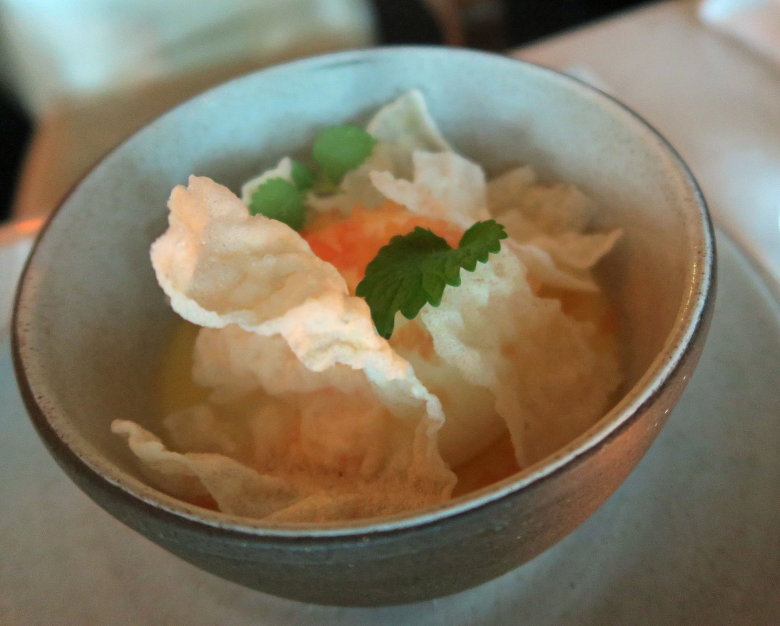 This was dressed with a ponzu like vinaigrette, with what tasted like a touch of ginger. which added a nice bit of acid; the beef was texturally very nice….not too soft, but pleasantly toothsome. The beef was topped with tender sprouts and a julienne of crisp taro….think taro chips strips. Quite a generous portion…..at this point we were glad we didn't go for 2 mains.