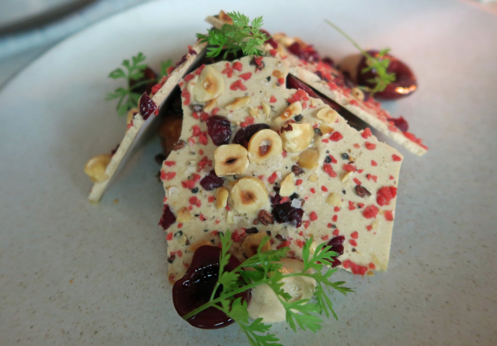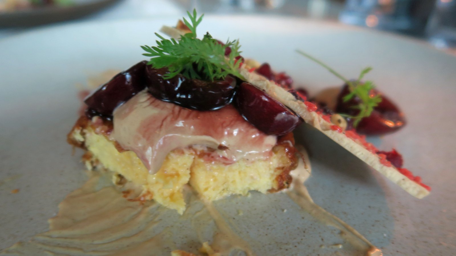 This was our least favorite dish of the night….the sour cherry topping and the pain perdue (i.e. "French Toast") just wiped out any of the rich, slightly livery flavor of the foie gras. Too much sweet and sour going on. This was foie gras torchon and didn't really hold up well in terms of texture and taste to all the busy flavors in the dish.