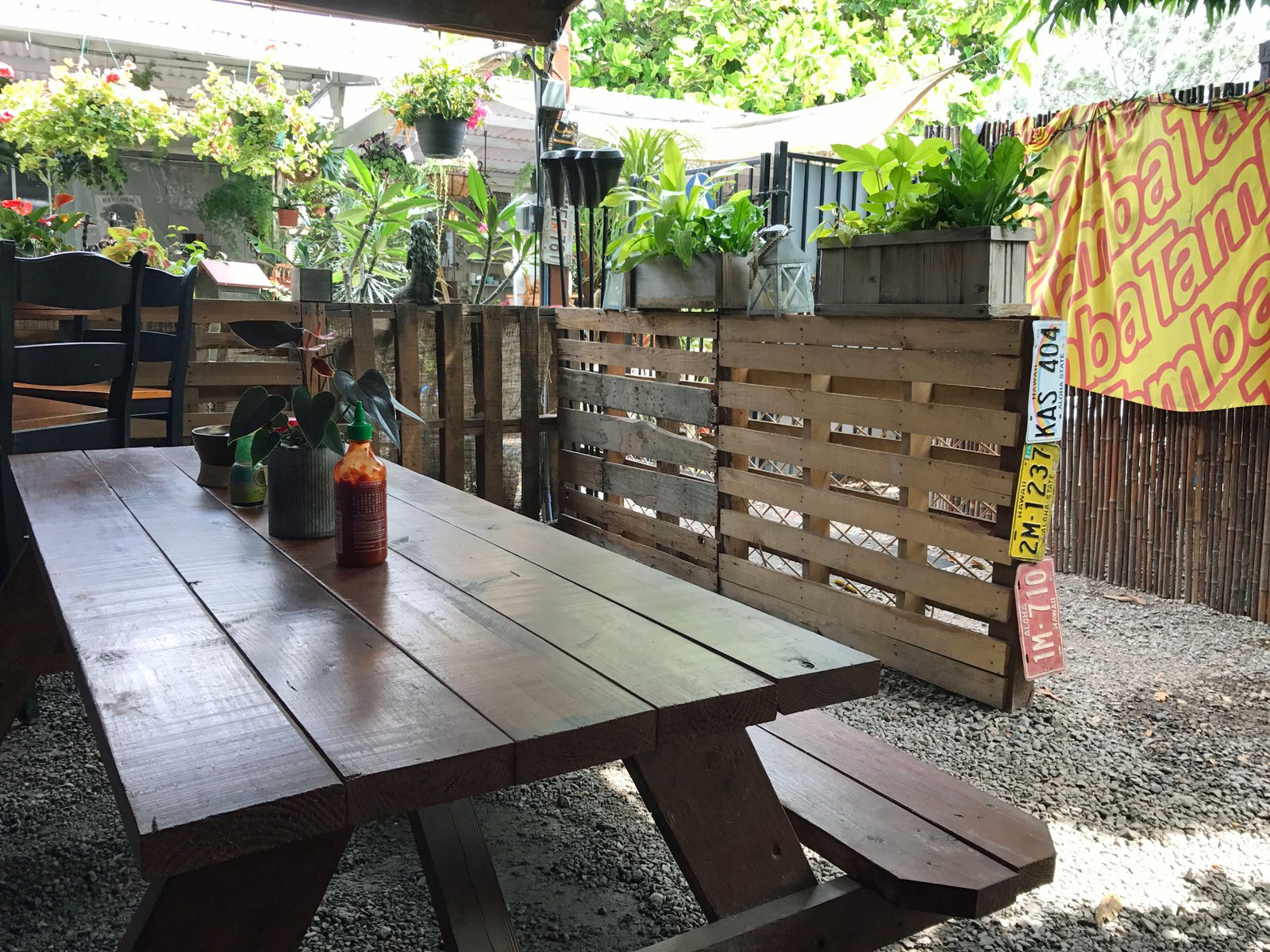 Interesting locale…..the Surfer Dude told me that this used to be some Organic Taco shop or something? Anyway, it's quite hipster-hippy-ish looking; basically a food trailer parked in a "lanai looking" lot with picnic/patio type seating, next to a Nursery.