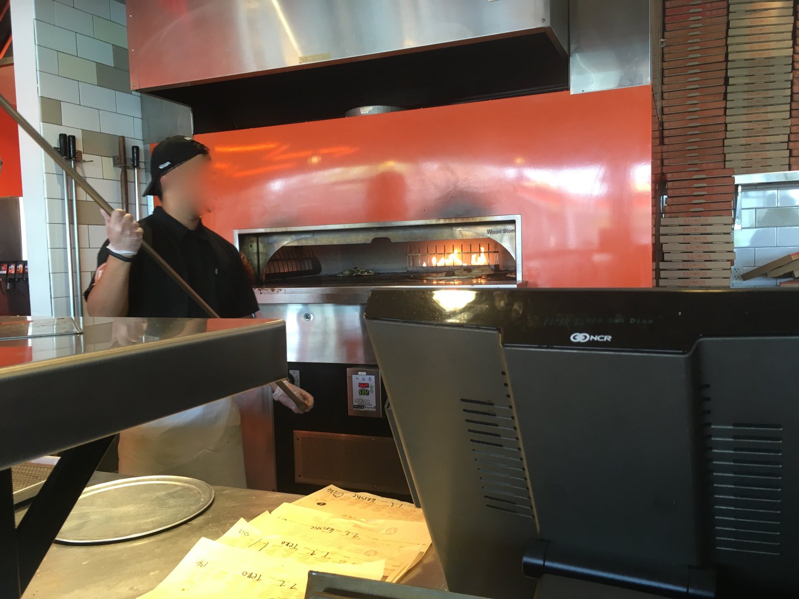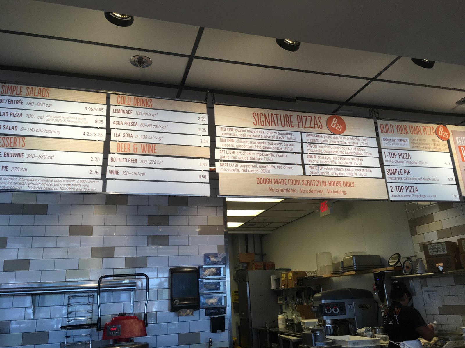 The system here is a bit more organized; when you order, your name and a number that is embossed on a metal tent-shaped piece are coordinated, so that the pizza in the oven doesn't get lost/given to someone else. {Let's just say I have received free pie coupons more than once because another customizable pizza place has given my order to an unsuspecting pick up. It is so easily preventable.}